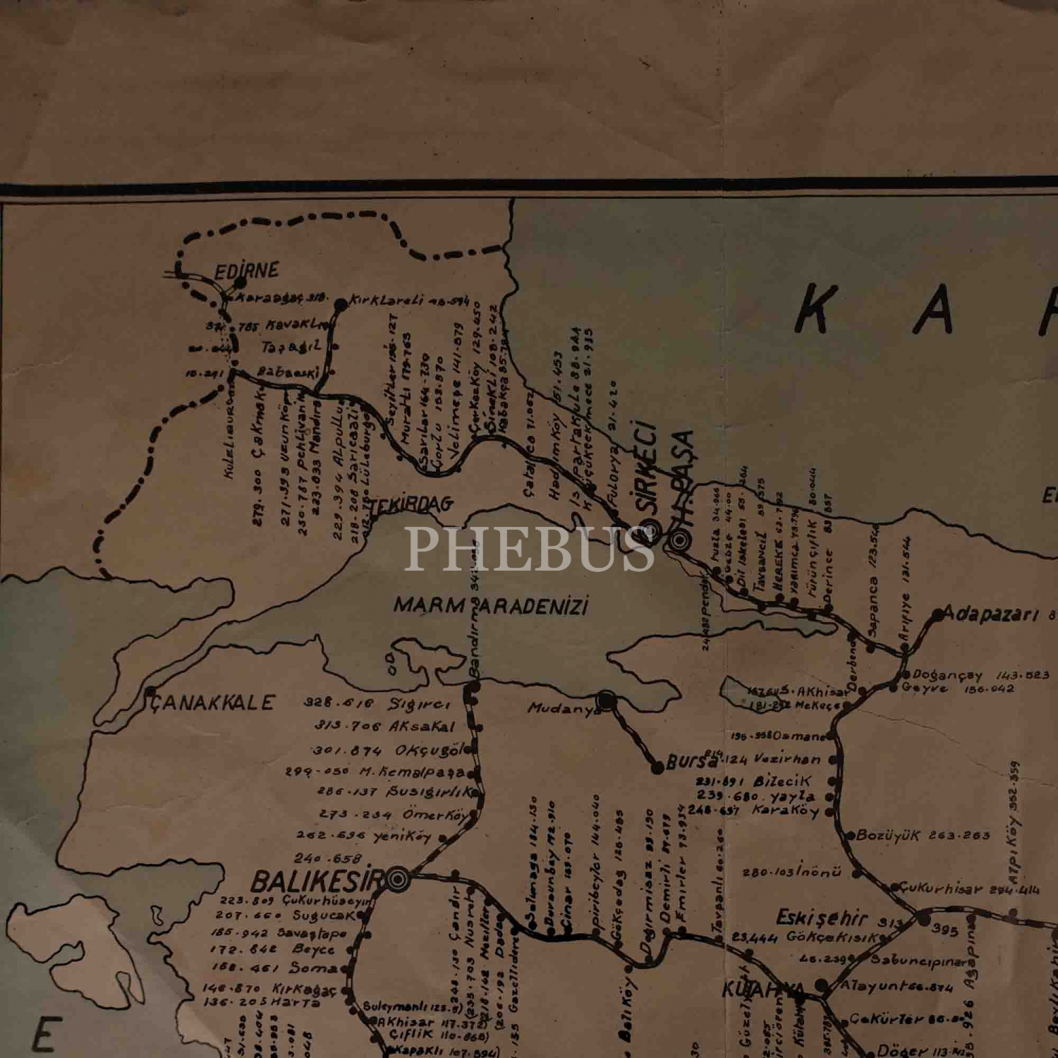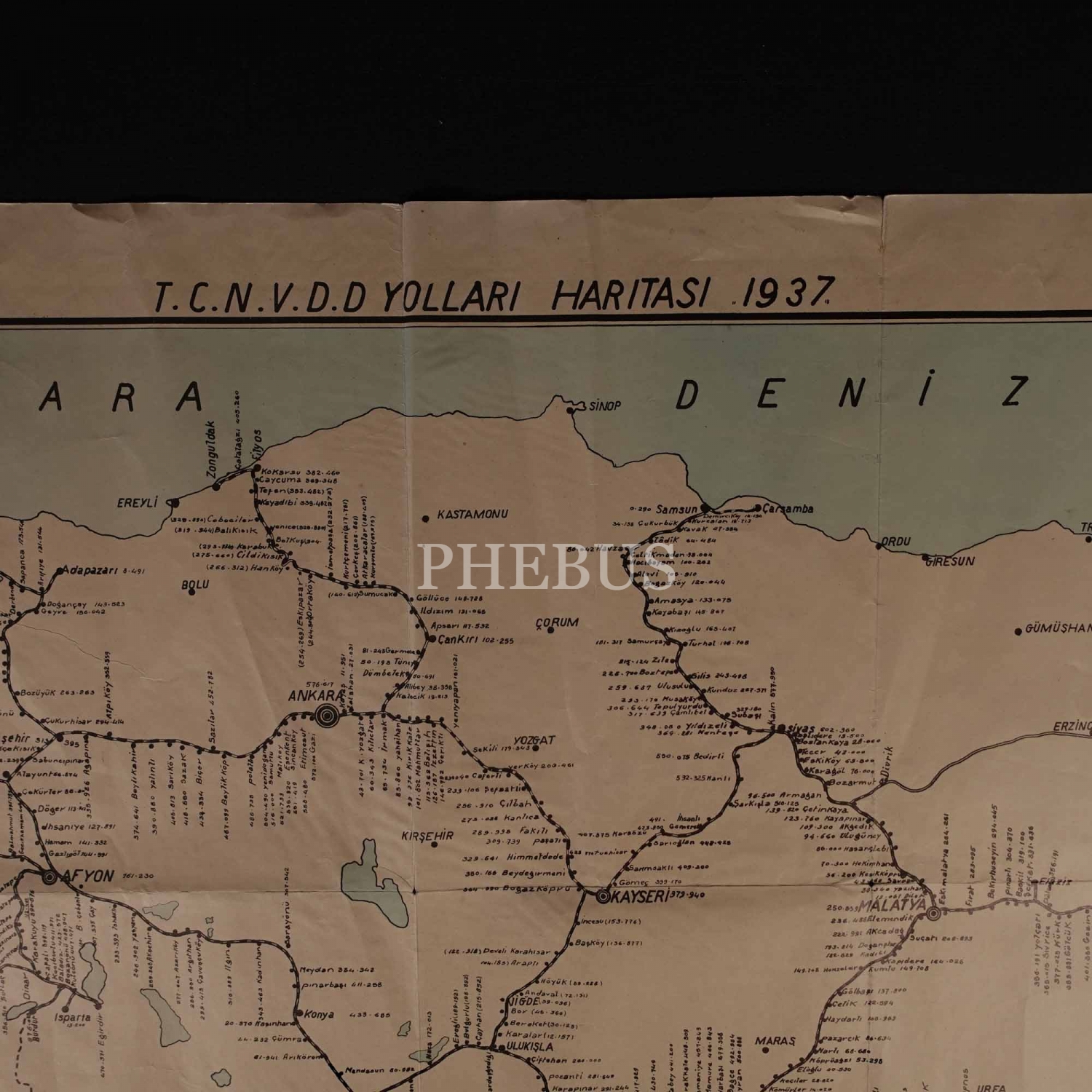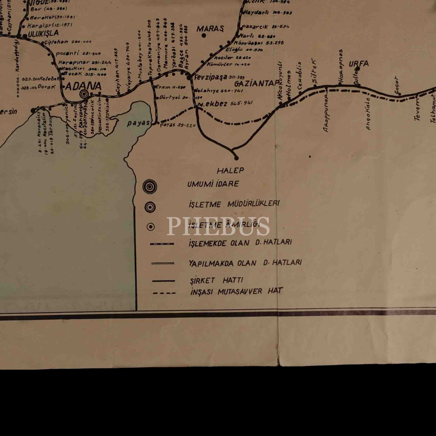 1937 senesi Türkiye Cumhuriyeti Devlet Demiryolları haritası, 94x54 cm...