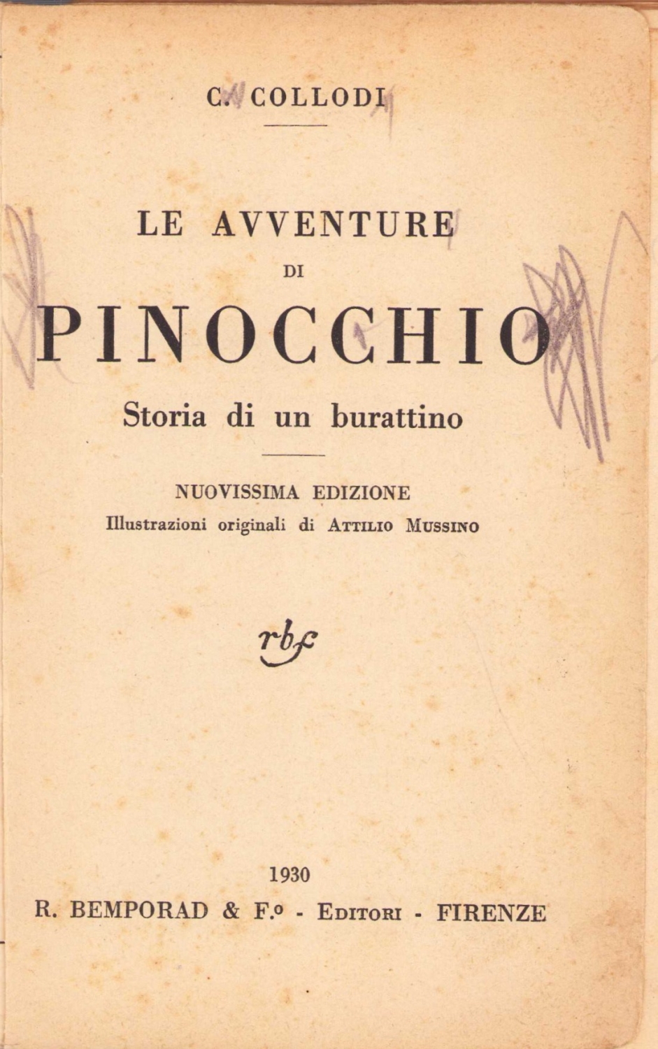 Fransızca Pinocchio, C. Collodi, İtalya, 1930, resimli, sırtı tamirli, 174 sayfa, 12x17 cm