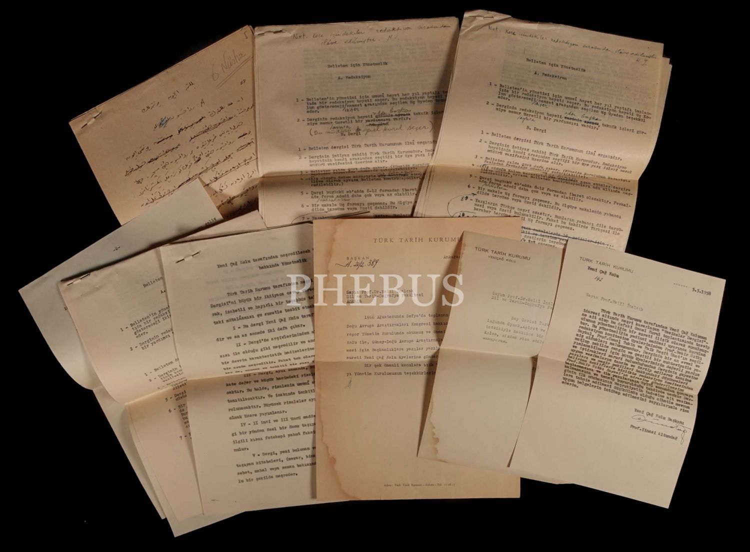 Türk Tarih Kurumu Yeni Çağ Kolu tarafından Halil İnalcık´a gönderilen mektuplar ve "Belleten" dergisinin yönetmeliği...