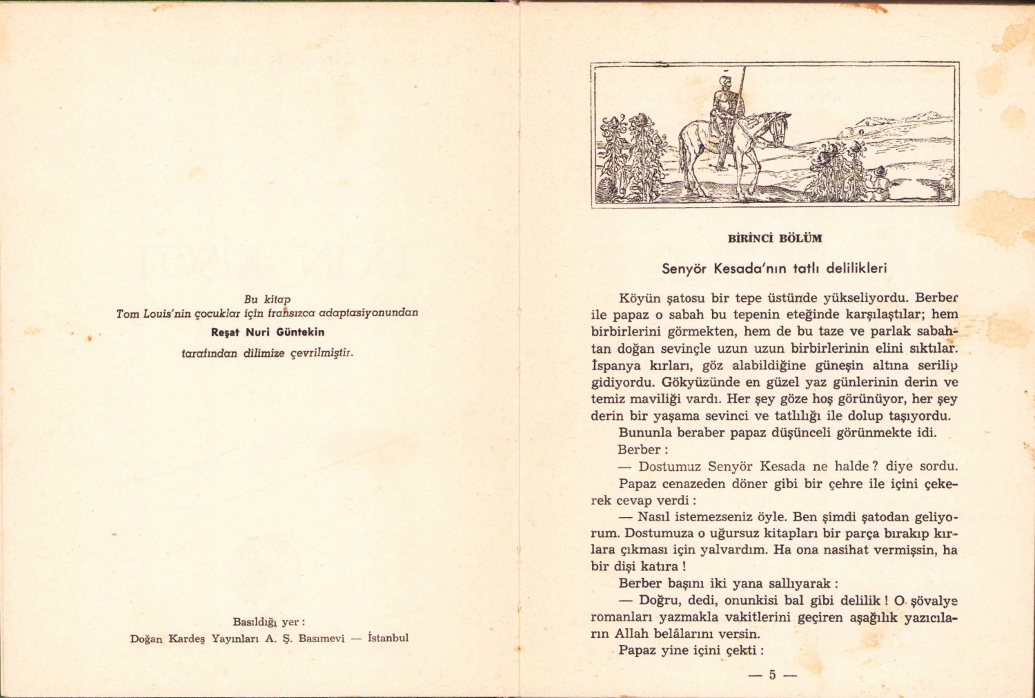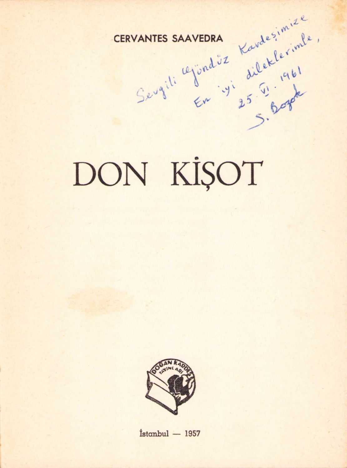 Don Kişot, Cervantes Saavedra, çev., Reşat Nuri Güntekin, İstanbul, 1957, resimli, 223 sayfa, 14x19 cm