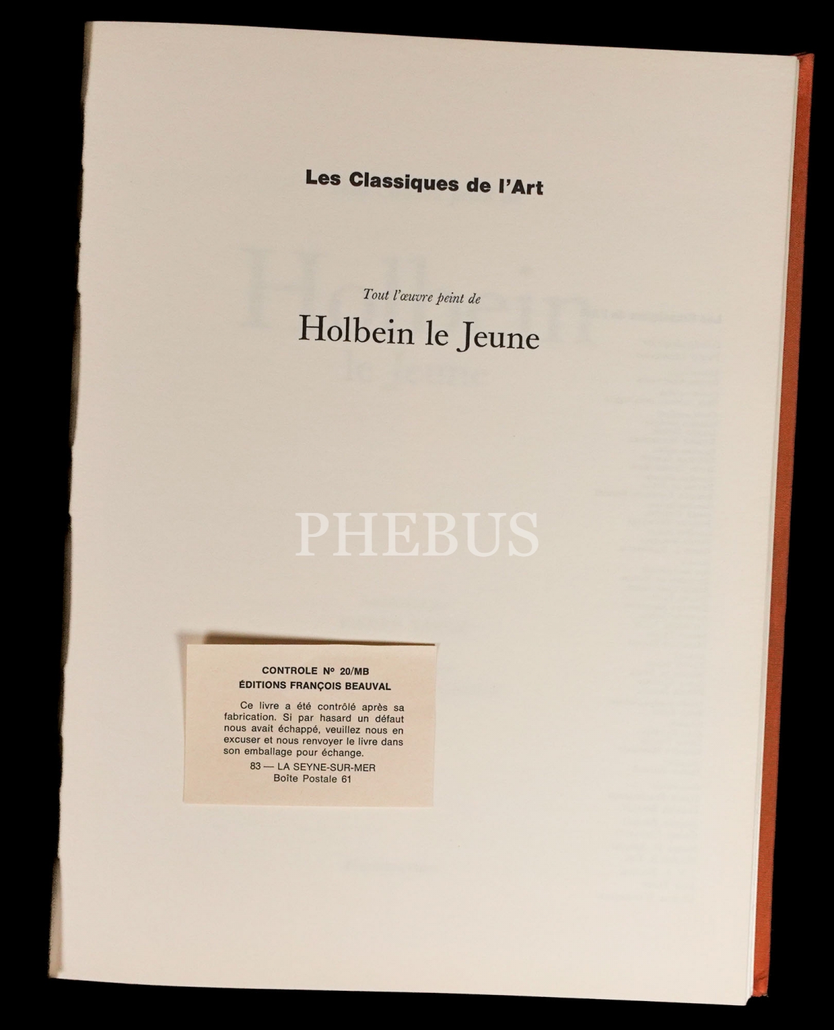 HOLBEIN LE JEUNE, Pierre Vaisse, 1972, Flammiron, 112 sayfa, 24x32 cm...