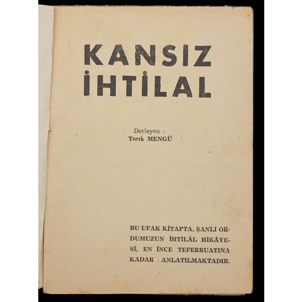 KANSIZ İHTİLAL, Derleyen: Tarık Mengü, 1960, Ercan Matbaası, 32 sayfa, 12x17 cm...