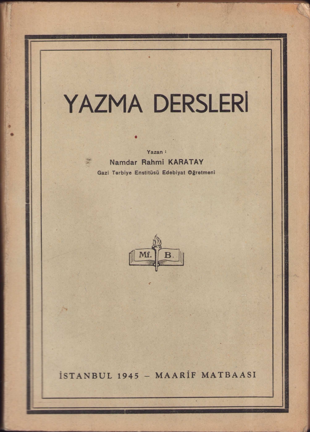 Yazma Dersleri, Namdar Rahmi Karatay, İstanbul, 1945, 273 sayfa, 16x24 cm