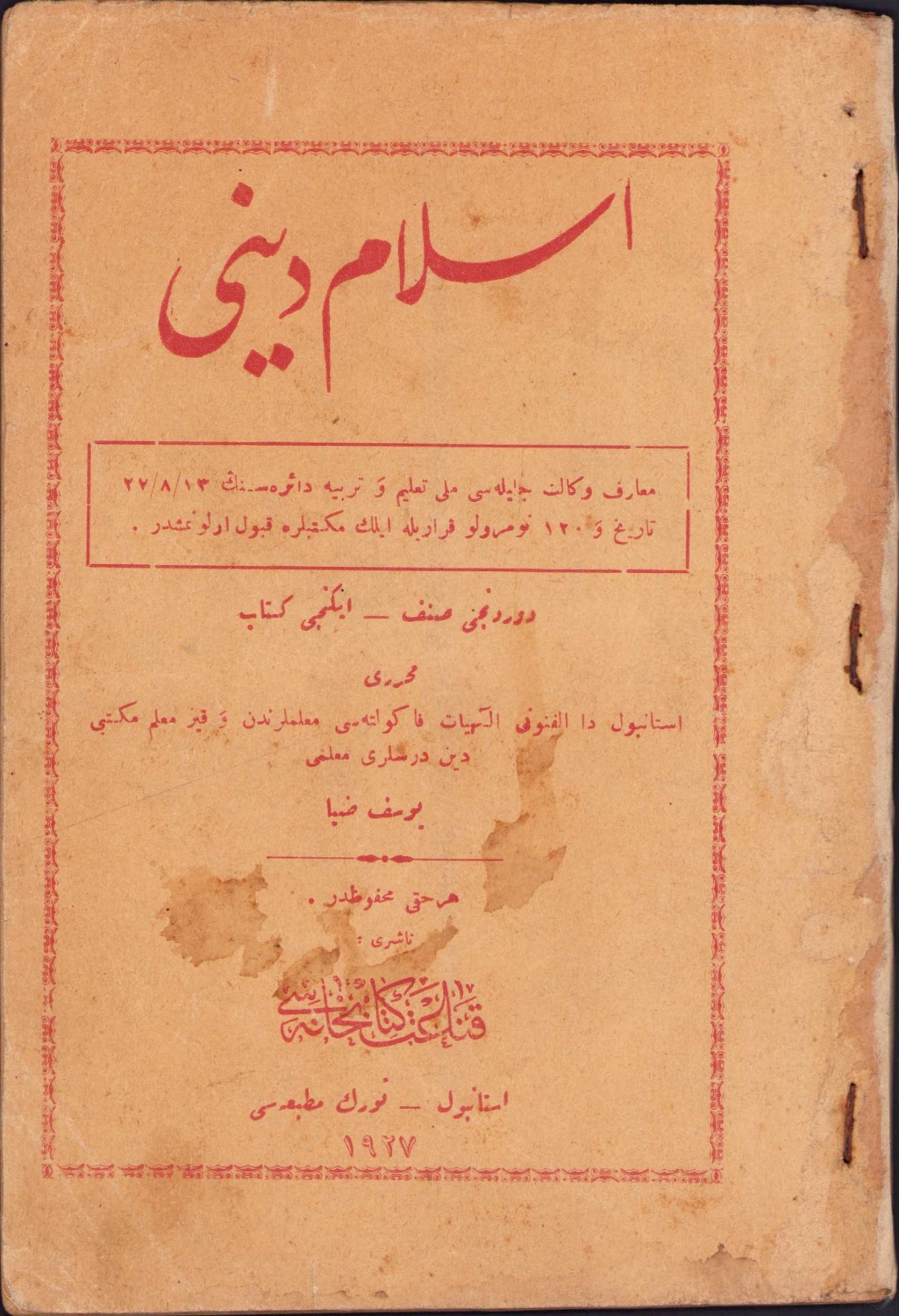 İslam-ı Dini dördüncü sınıf - ikinci kitap, Yusuf Ziya, Türk Matbaası, İstanbul, 1927, 48 sayfa, 14x20 cm, ÖZEGE; 9357