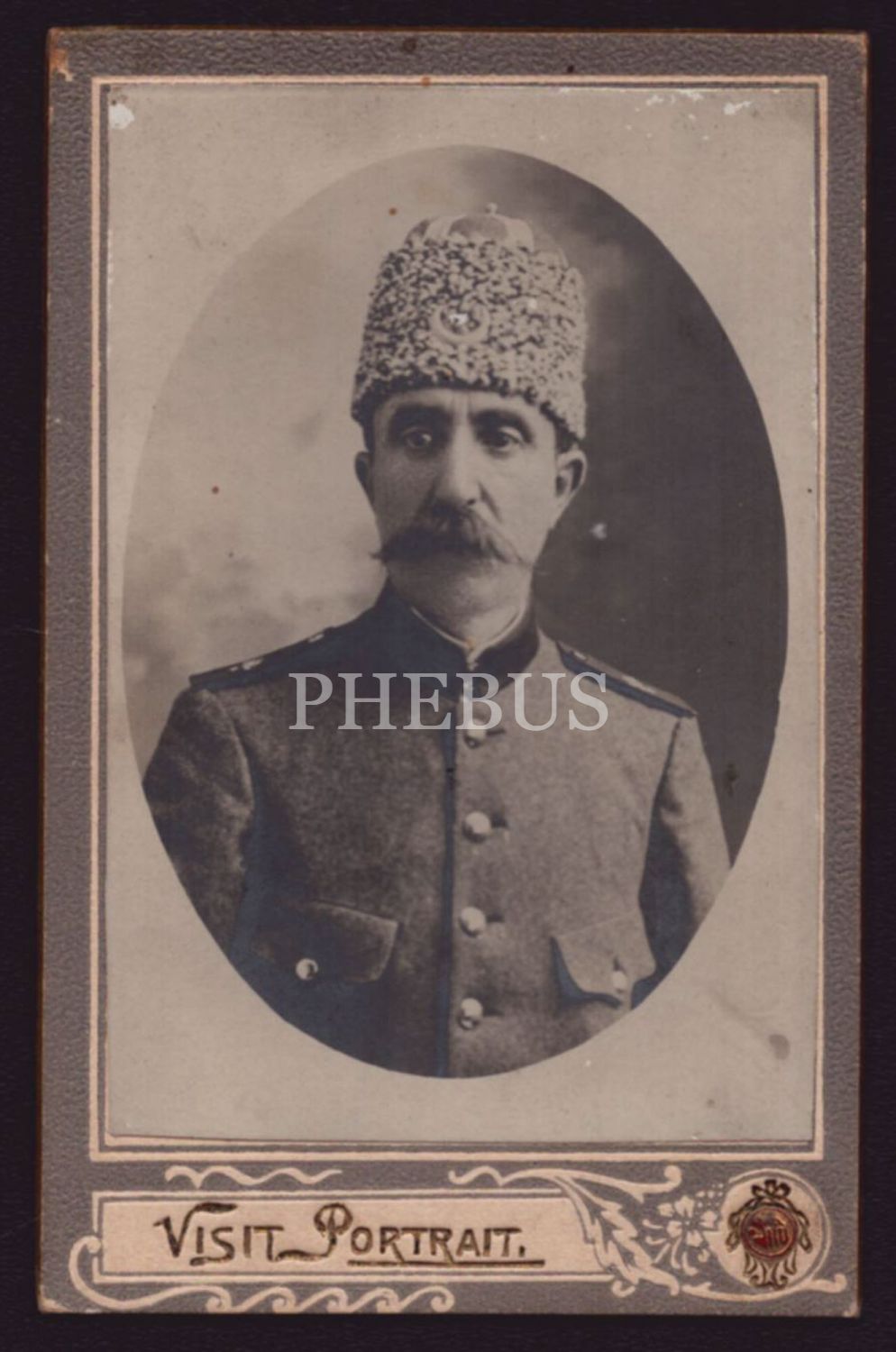 Kalpaklı Osmanlı subayının hatıra fotoğrafı, 7x11 cm...