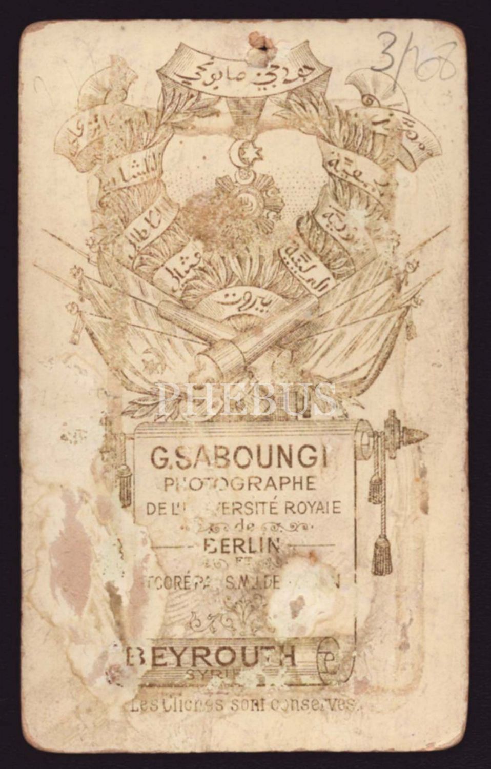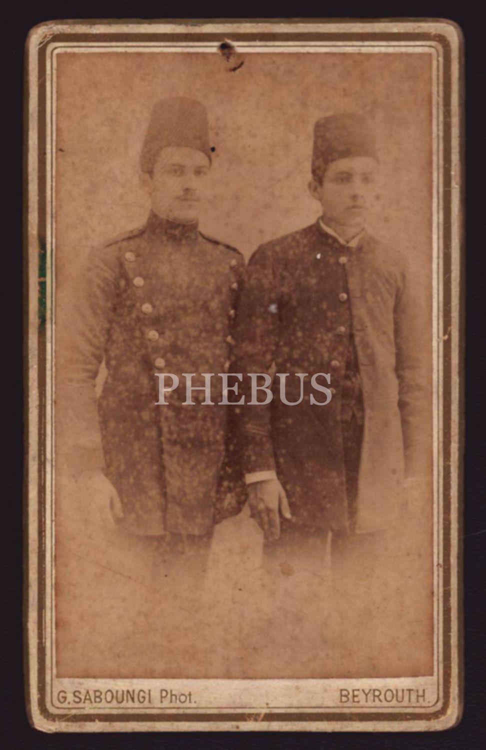Osmanlı subaylarının hatıra fotoğrafı, G. Saboungi Fotoğrafhanesi, Beyrouth (Beyrut), 7x11 cm...