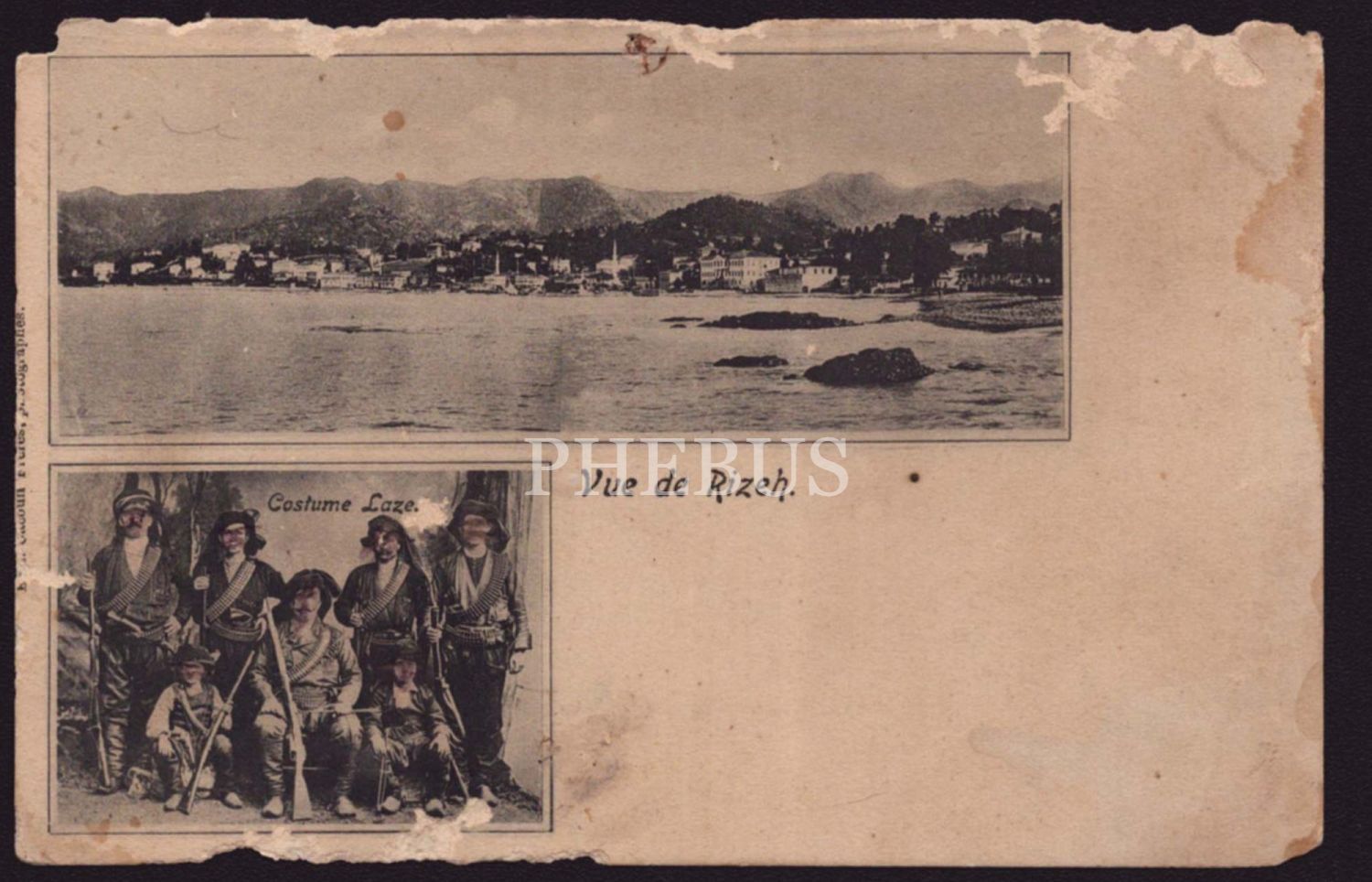 Genel Rize manzarası ve yöresel kıyafetler içinde Rizeliler görselli parçalı kartpostal, 14x9 cm...
