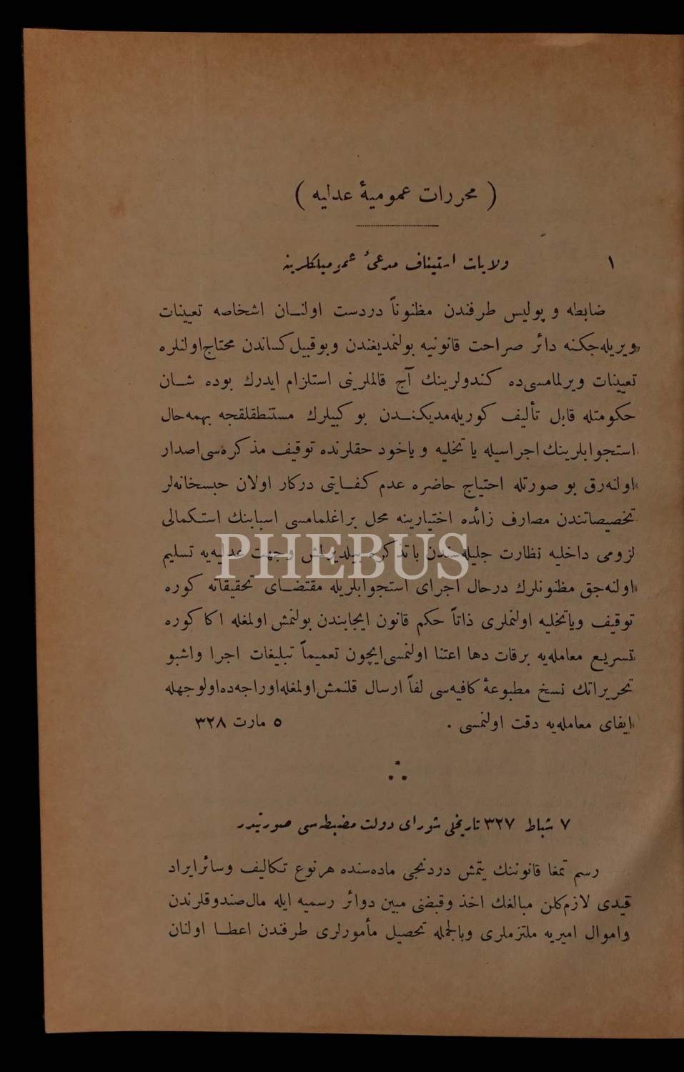 MUHARRERAT-I UMUMİYE-İ ADLİYE, 1329, Matbaa-i Amire, 14 sayfa, 16x23 cm...