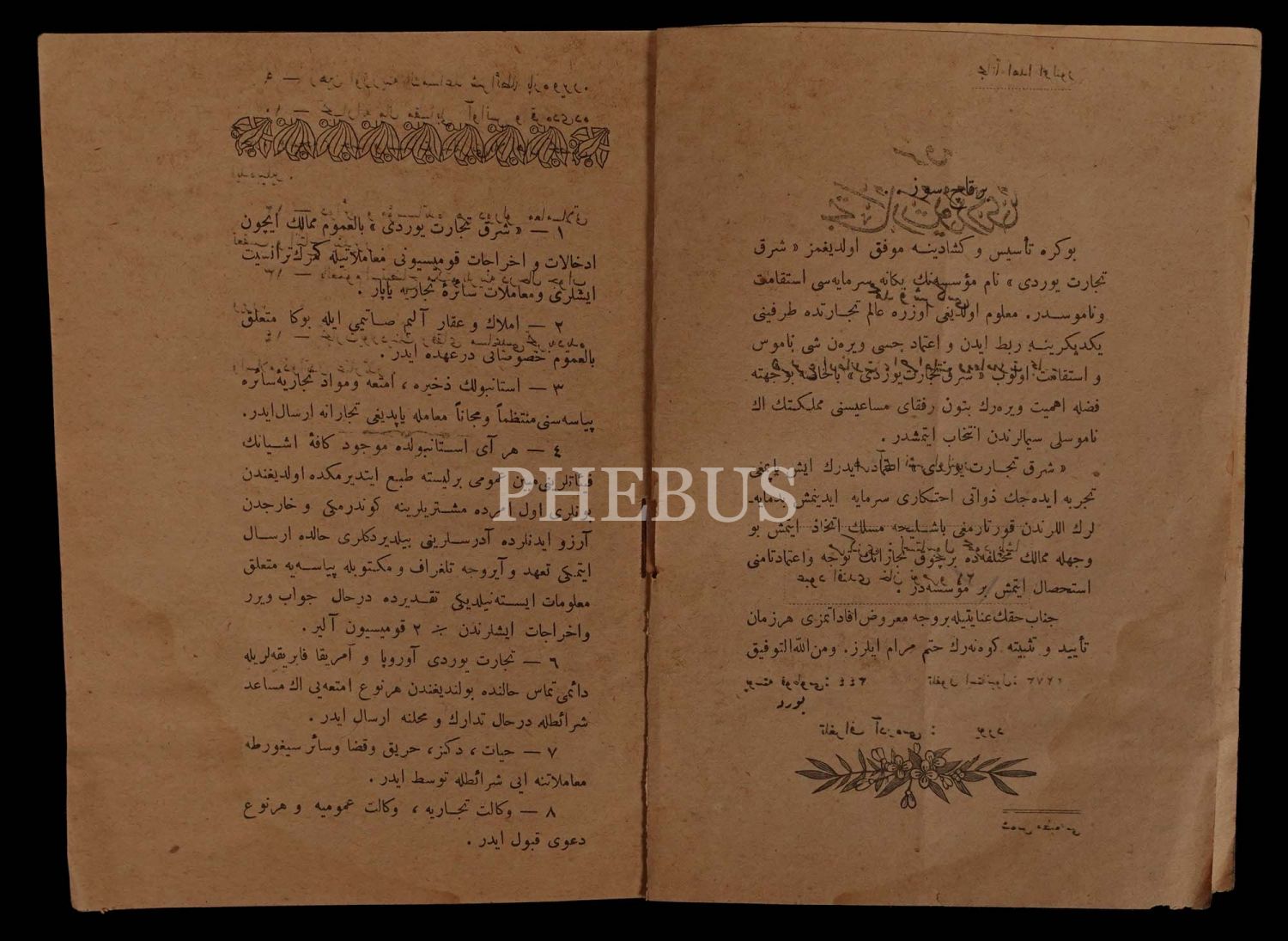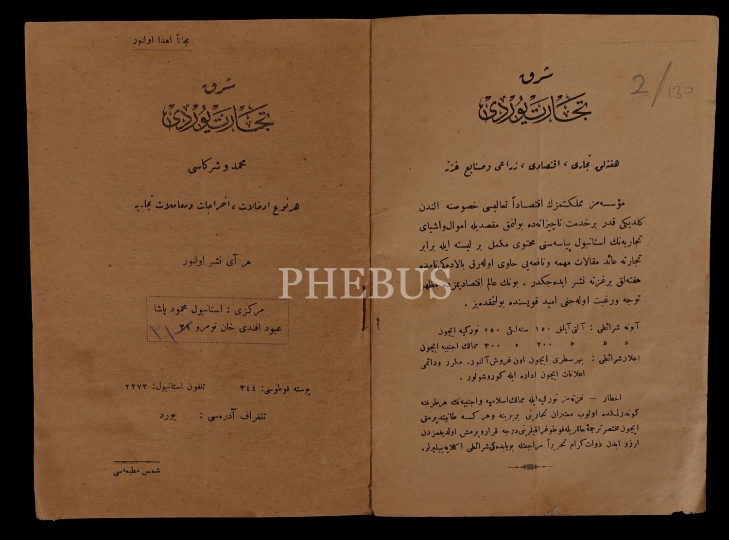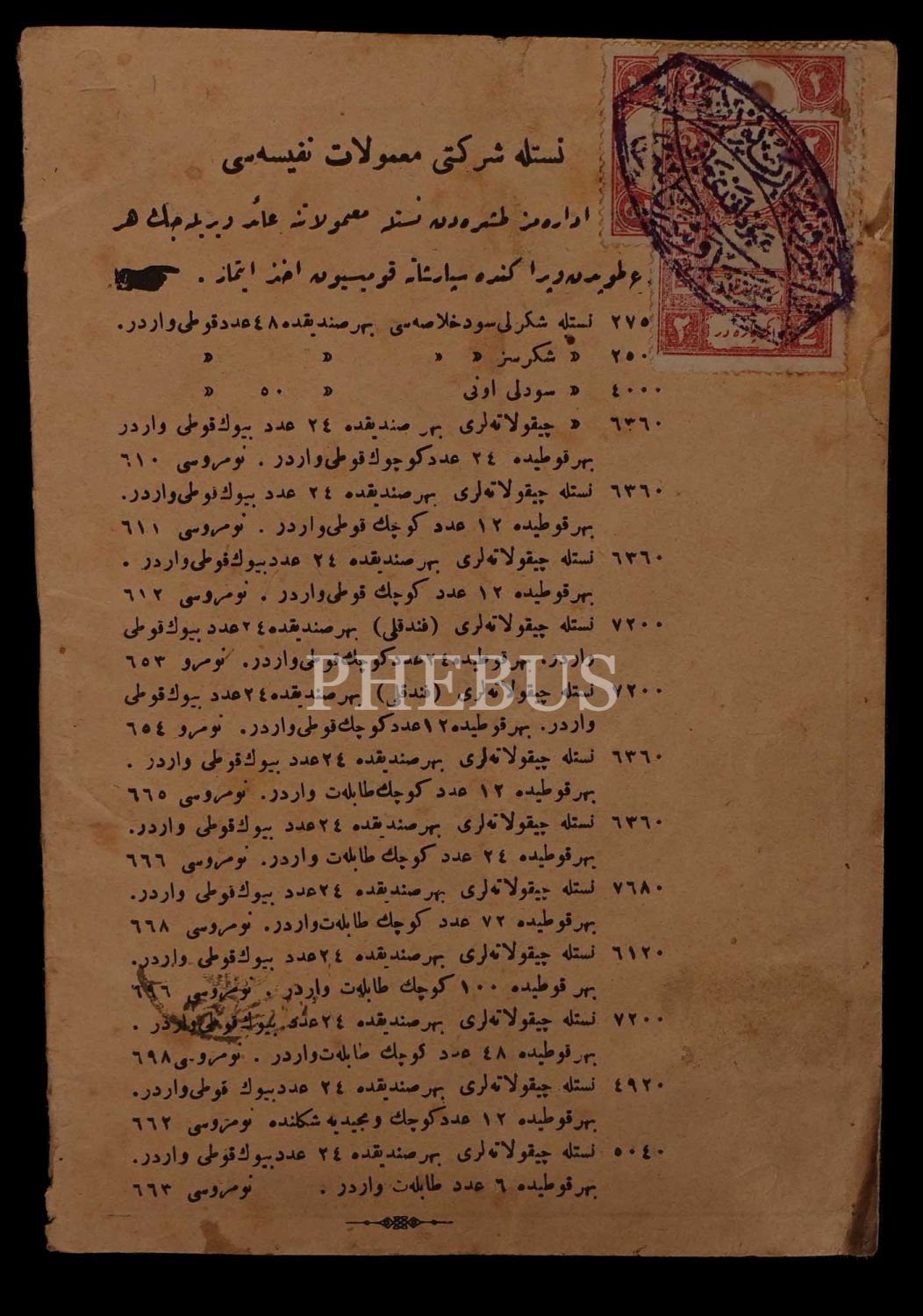 "Her nevi ithalat ve ihracat ürünlerinin tüccarı" Şark Ticaret Yurdu´nun Osmanlıca ürün kataloğu, 14x20 cm..