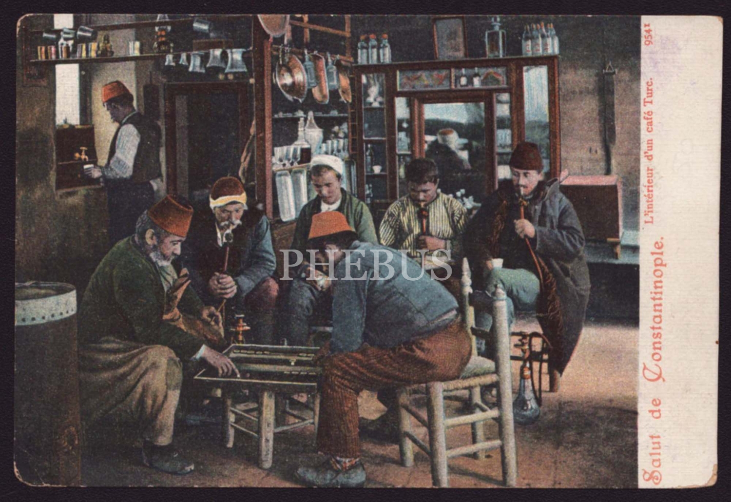 Bir Türk kahvehanesinin içi, "Salut de Constantinople - L´interieur d´un cafe Turc.", 14x9 cm...