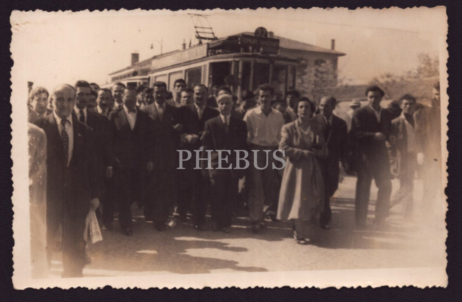 Topkapı-Topçular Tramvay Hattının açılış töreninde alınmış toplu hatıra fotoğrafı, 8x13 cm...