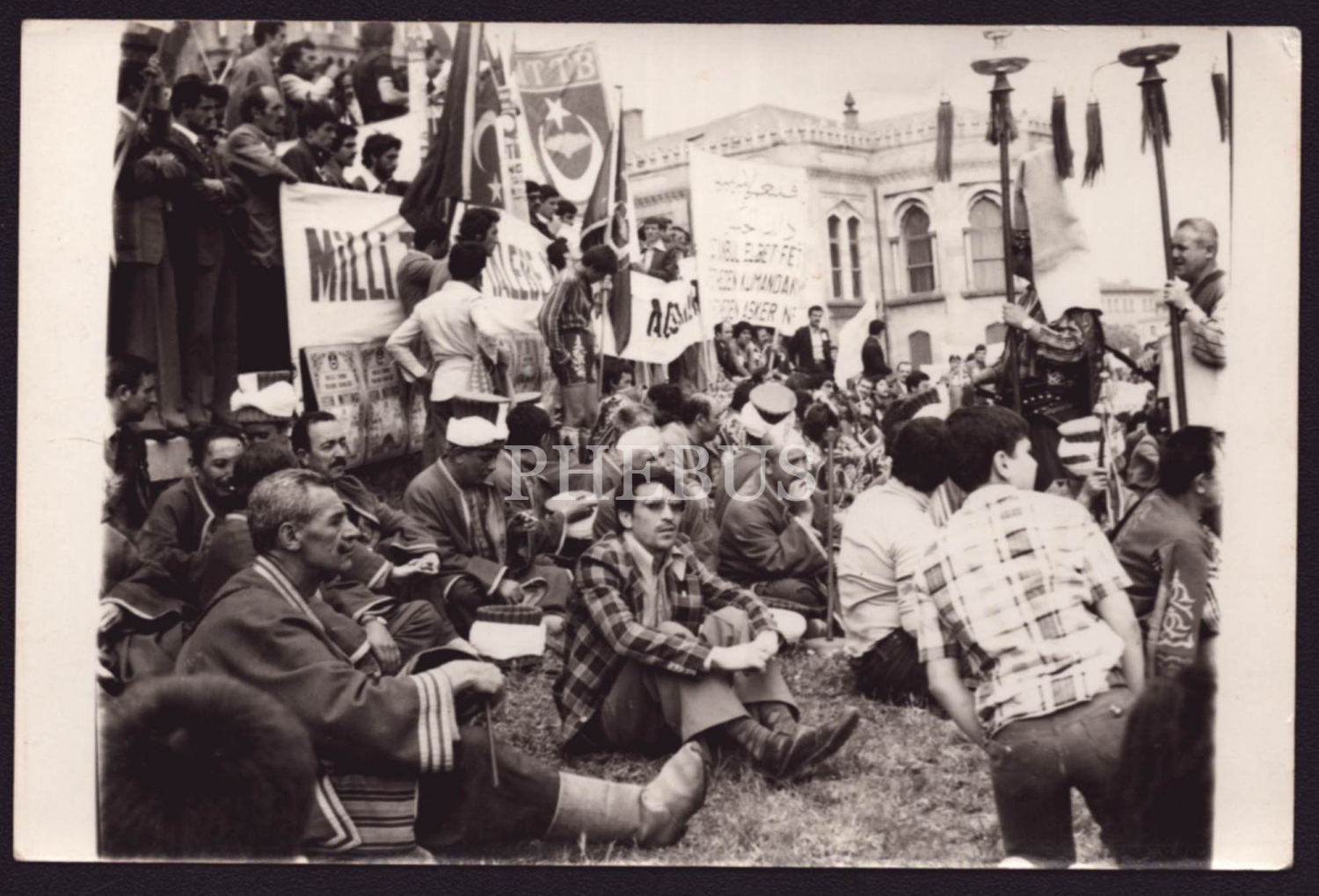29 Mayıs 1976 tarihinde MTTB´nin İstanbul´un fethi yıldönümü mitingi, çimenlerde oturan insanlar birazdan mikrofona çıkacak olan Necip Fazıl Kısakürek´i bekliyorlar, 9x14 cm...