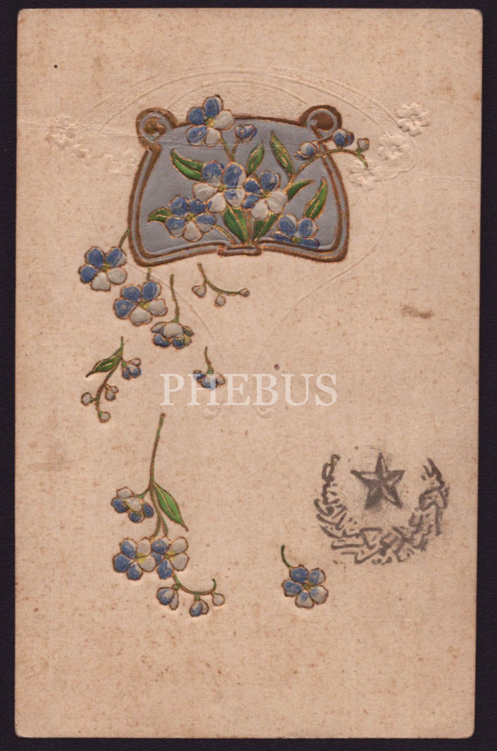 Ay yıldız formunda "Iydınız said ömrünüz mezid olsun" yazılı gofre bayram tebrik kartı, 14x9 cm...