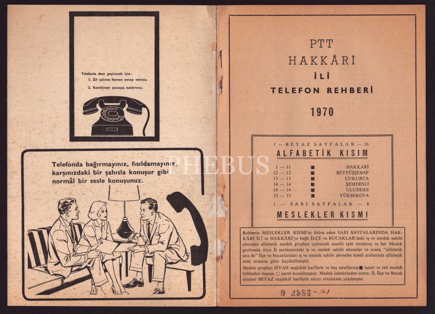 1970-1971 tarihli Hakkari ili telefon rehberi, 17x24 cm...