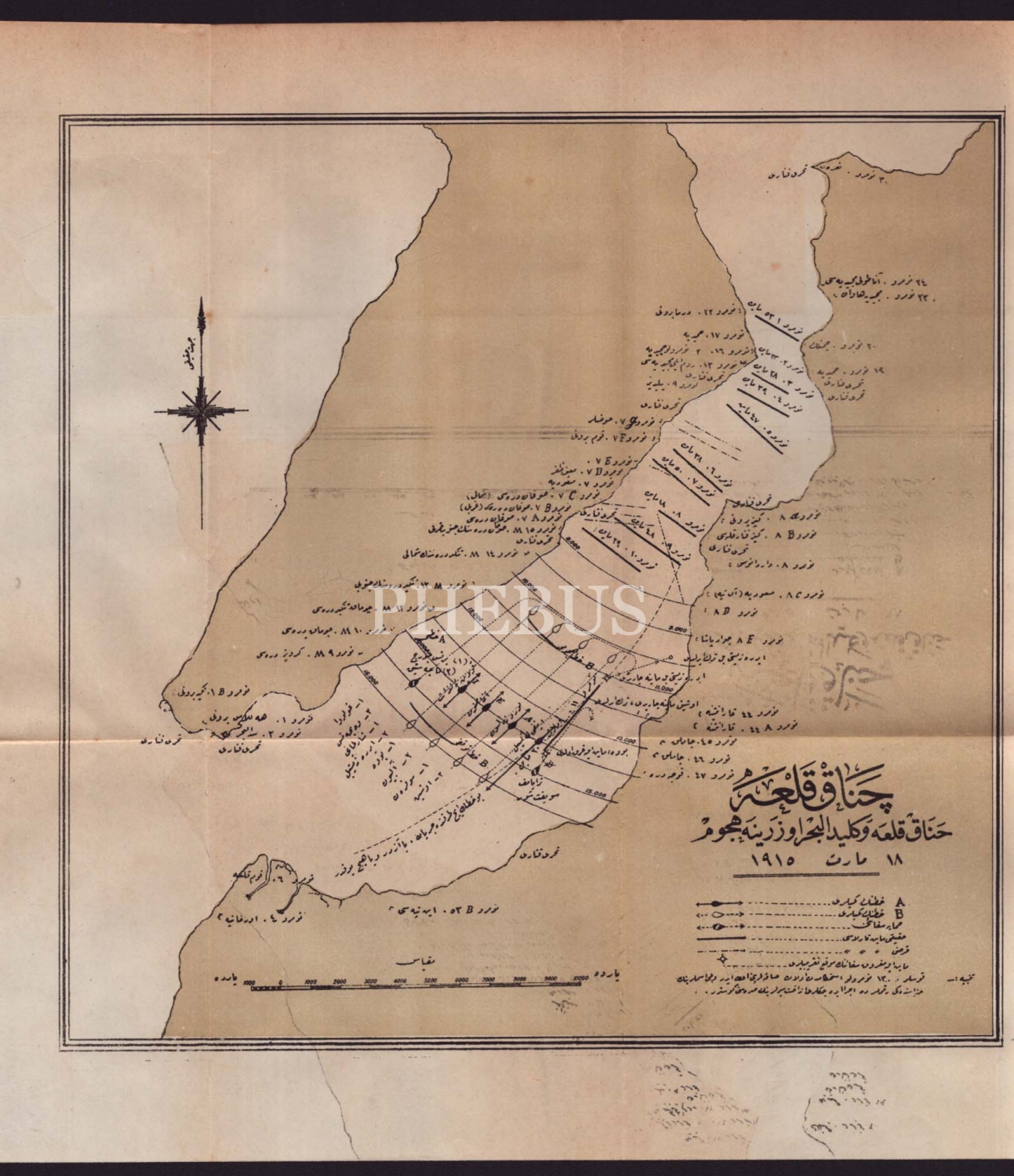 Çanakkale Boğazı´nda gerçekleşen hücumun krokisini gösteren 18 Mart 1915 tarihli Osmanlıca harita...