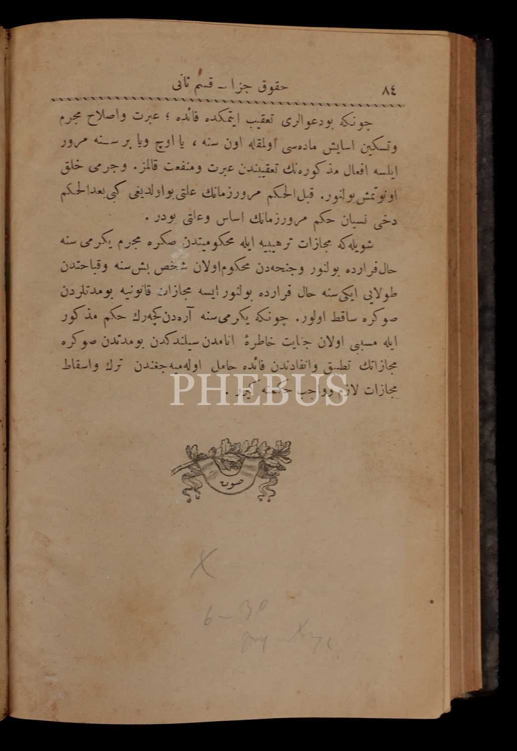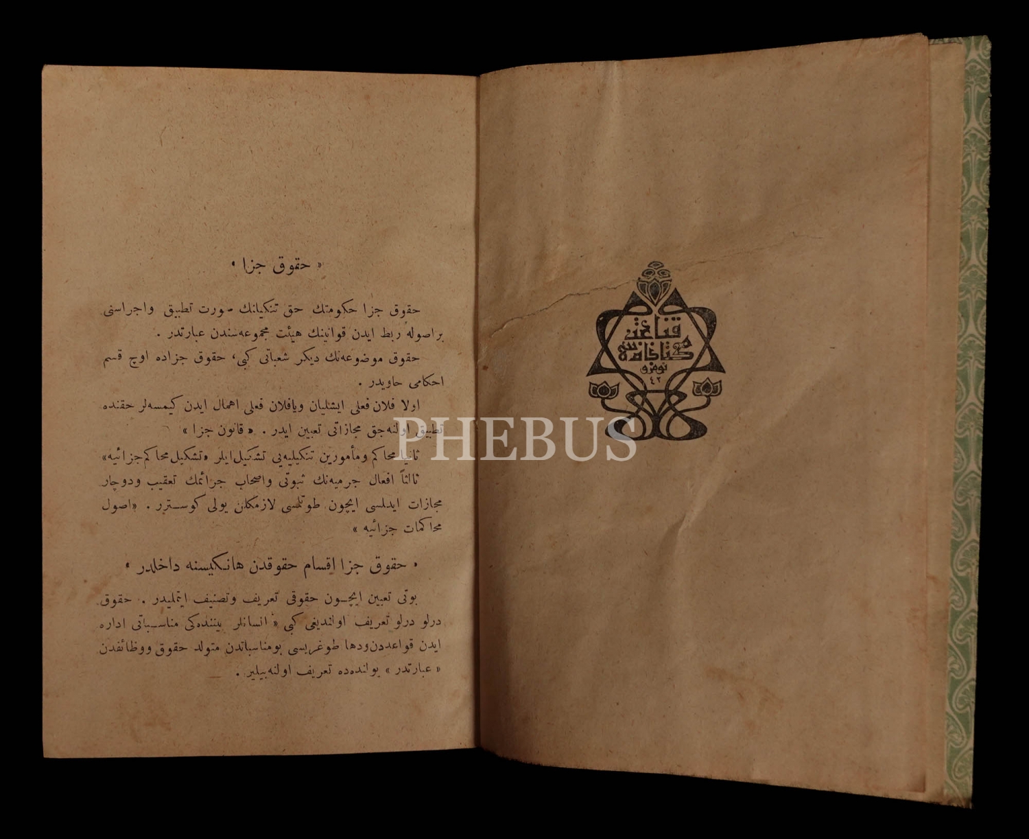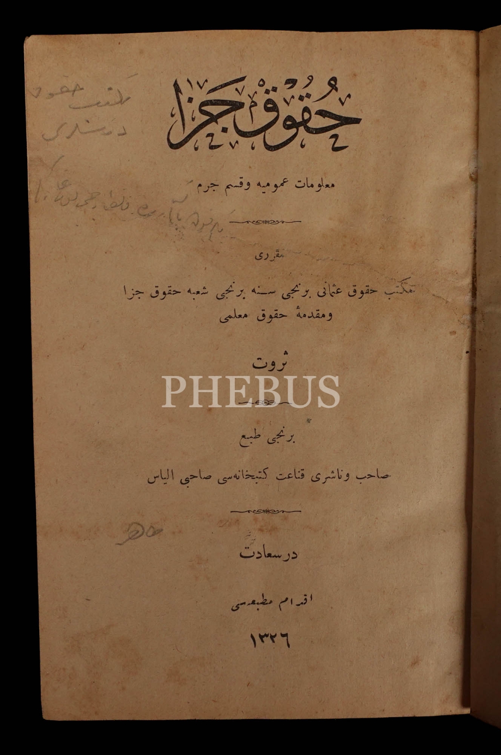 HUKUK-İ CEZA (1 ve 2. kısım), Servet, 1326, İkdam Matbaası, 269+84 sayfa, 14x20 cm...