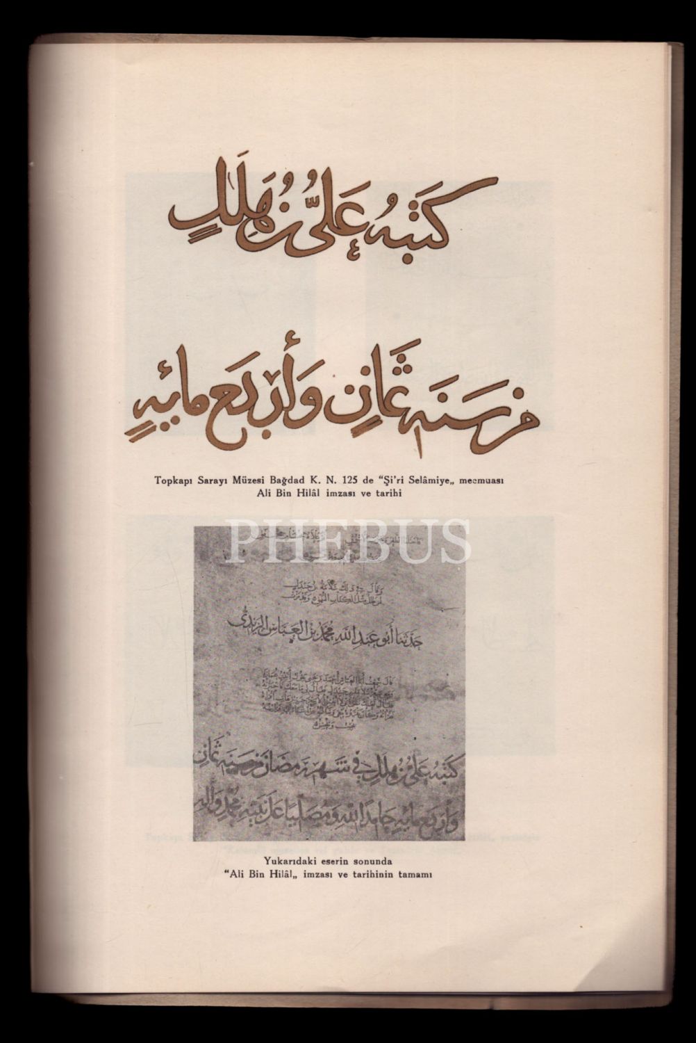HATTAT ALİ BİN HİLÂL HAYATI VE YAZILARI, Süheyl Ünver, 1958, Yeni Laboratuar Yayınları, 15+18 sayfa, 20x28 cm...
