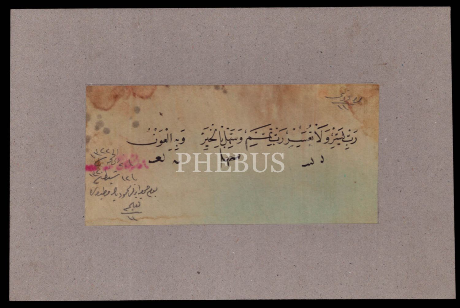 Hoca işi, nesih "Rabbi Yessir" duası, paspartusuyla 27x18 cm...
