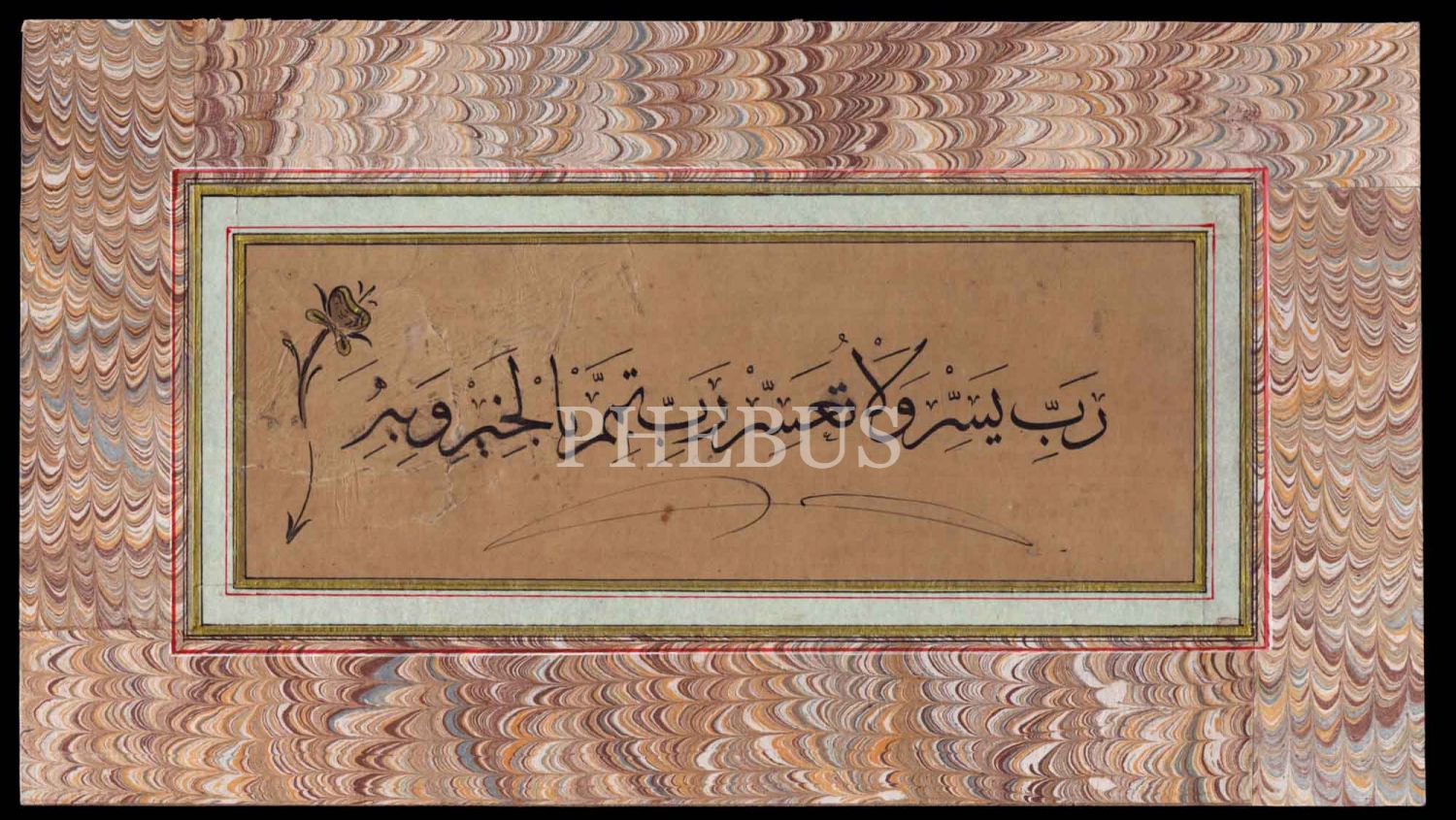 Hoca işi, sülüs "Rabbi Yessir" duası, paspartusuyla 32x18 cm...