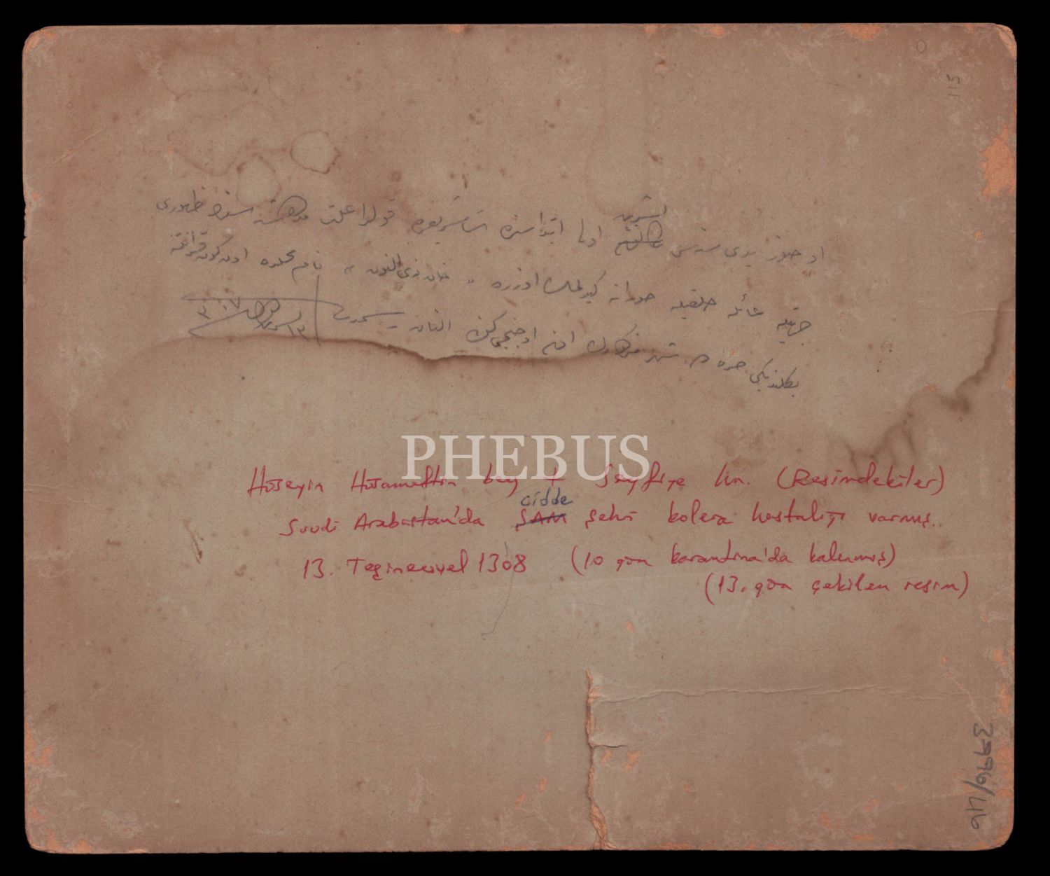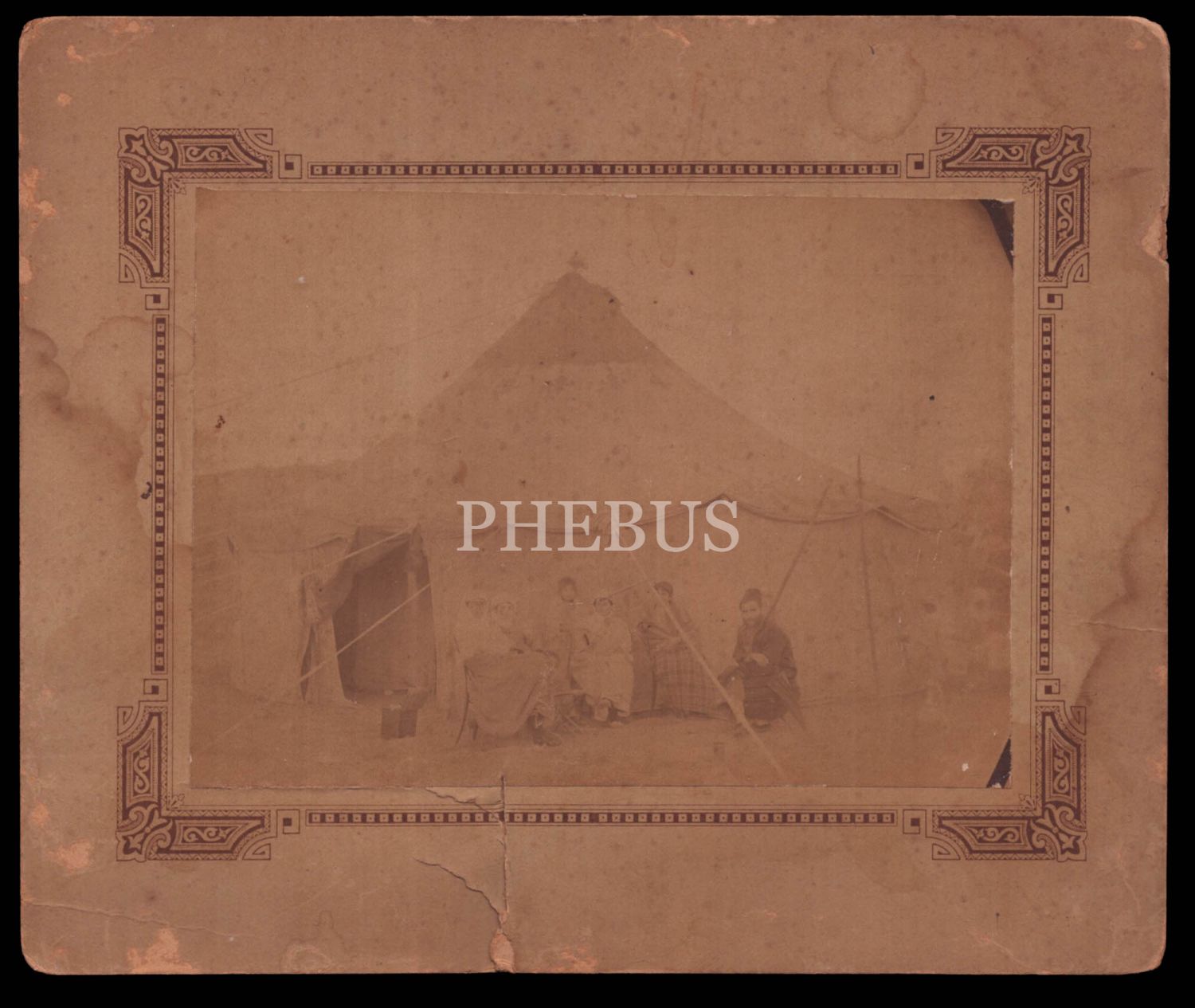 Suudi Arabistan´ın Cidde şehrinde 13 Teşrinievvel 1308 tarihinde meydana gelen kolera salgını nedeniyle çadırlarında karantinaya giren bir ailenin fotoğrafı, paspartusuyla 24x20 cm...
