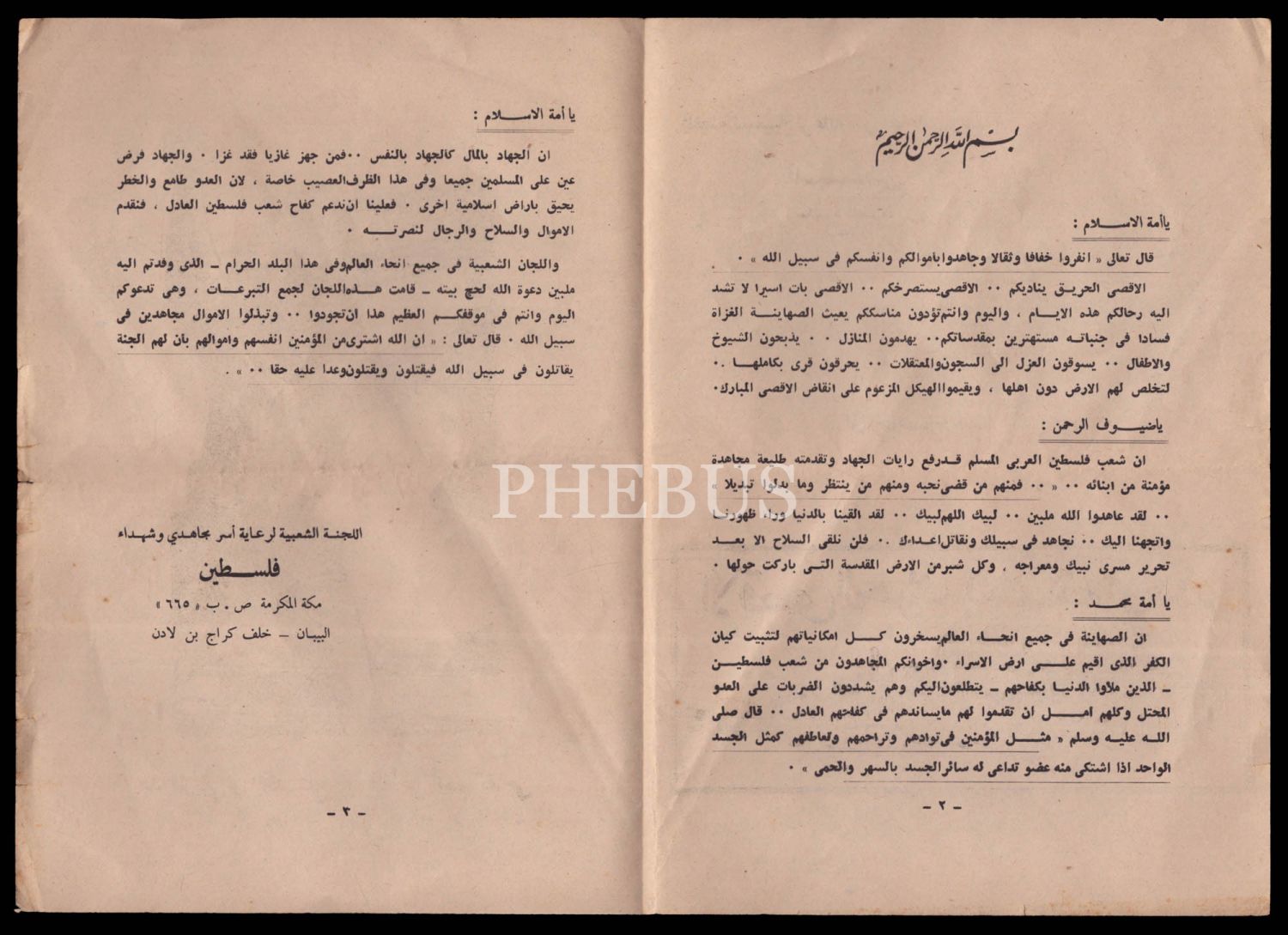 Kudüs´te İsrail ve Filistin arasında yaşanan çatışmalar dolayısıyla yayımlanmış cihad çağrısı, 4 sayfa, 18x25 cm...