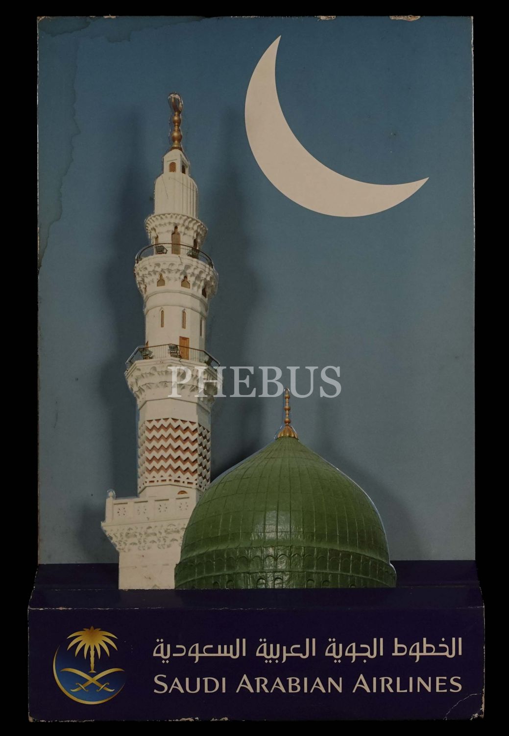 Hz. Muhammed, Hz. Ebubekir ve Hz. Ömer´in türbeleri üzerine inşa edilmiş Yeşil Kubbe görselli Suudi Arabistan Havayolları kartoneti, 20x33 cm...