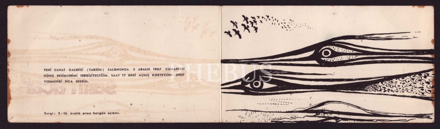 Ressam Salih Acar´dan ıslak imzalı resim sergisi davetiyesi, Aralık 1967, Taksim Yeni Sanat Galerisi, 17x9 cm...