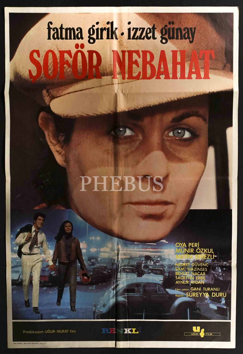 Başrollerini Fatma Girik ile İzzet Günay´ın üstlendiği Şoför Nebahat filminin afişi, Uğur Film, 68x99 cm...