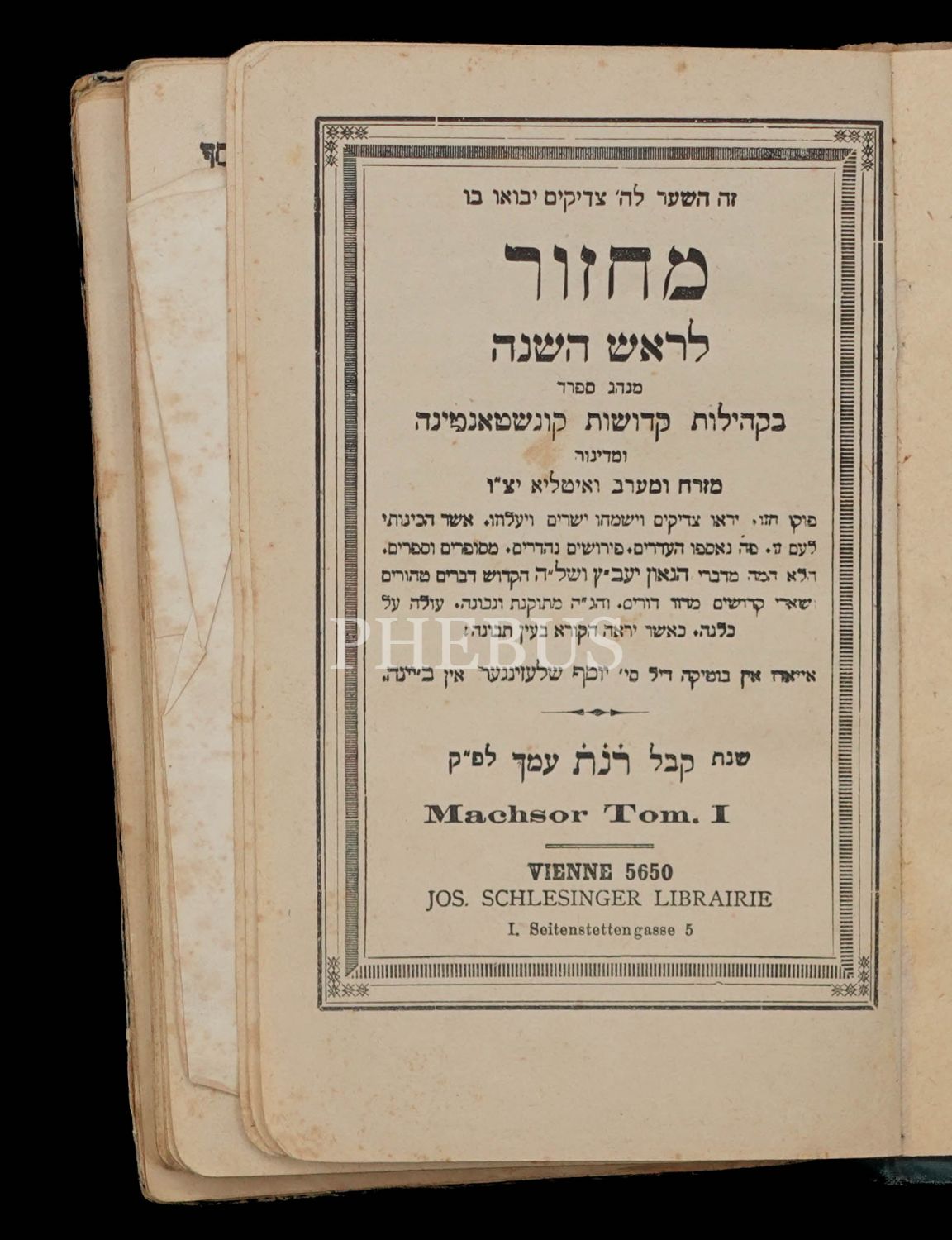 MACHZOR ROSH HASHANA (מחזור לראש השנה) Viyana baskısı, 1890 (5650) baskı, cilt 1. Schlesinger Kütüphanesi, 204 sayfa...
