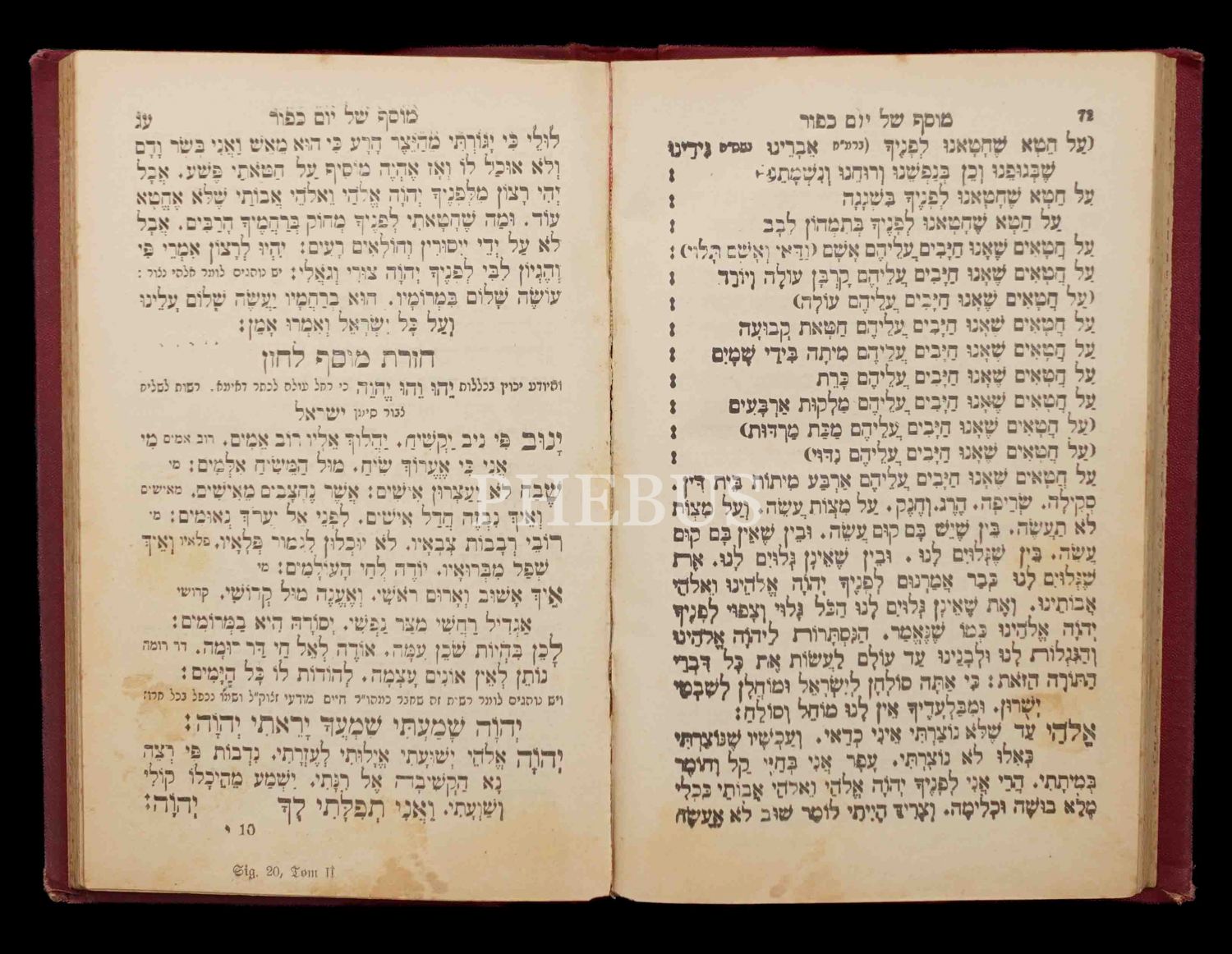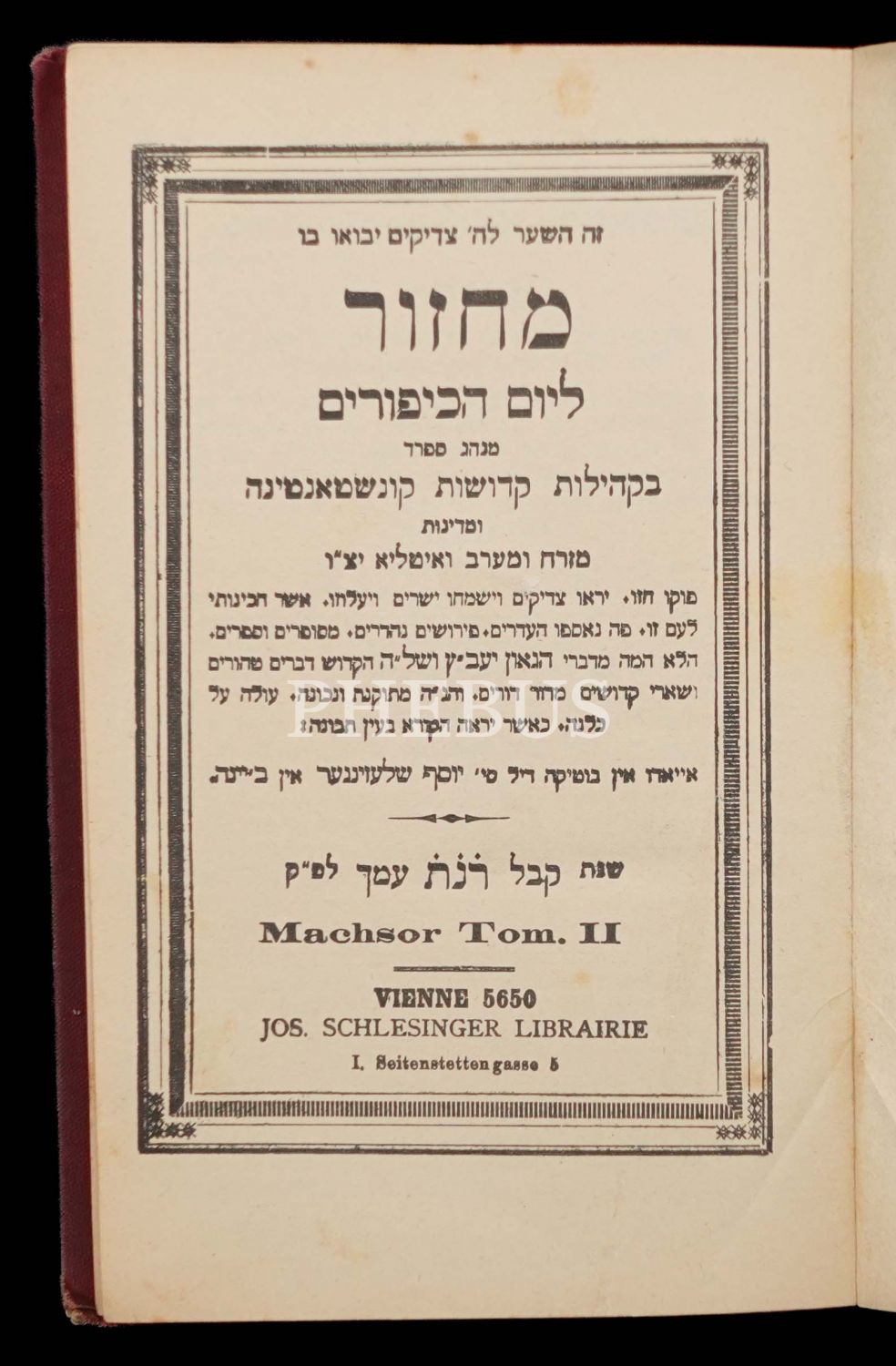 MACHZOR LE YOK KİPPURİM (מחזור יוֹם כִּיפּוּר), Viyana Schlezinger Kitabevi, 5650-1890 2. Cilt, 152+338 s.