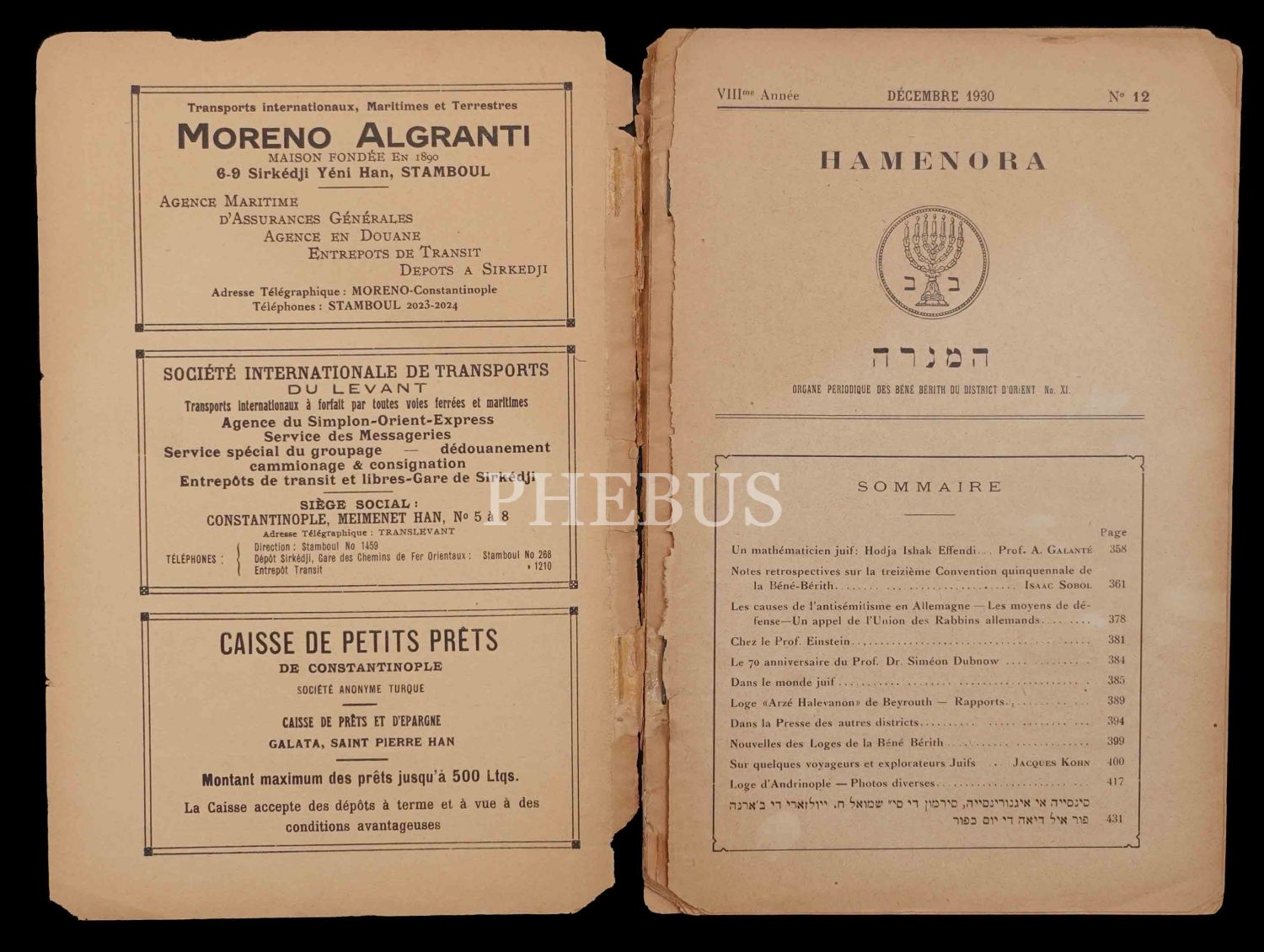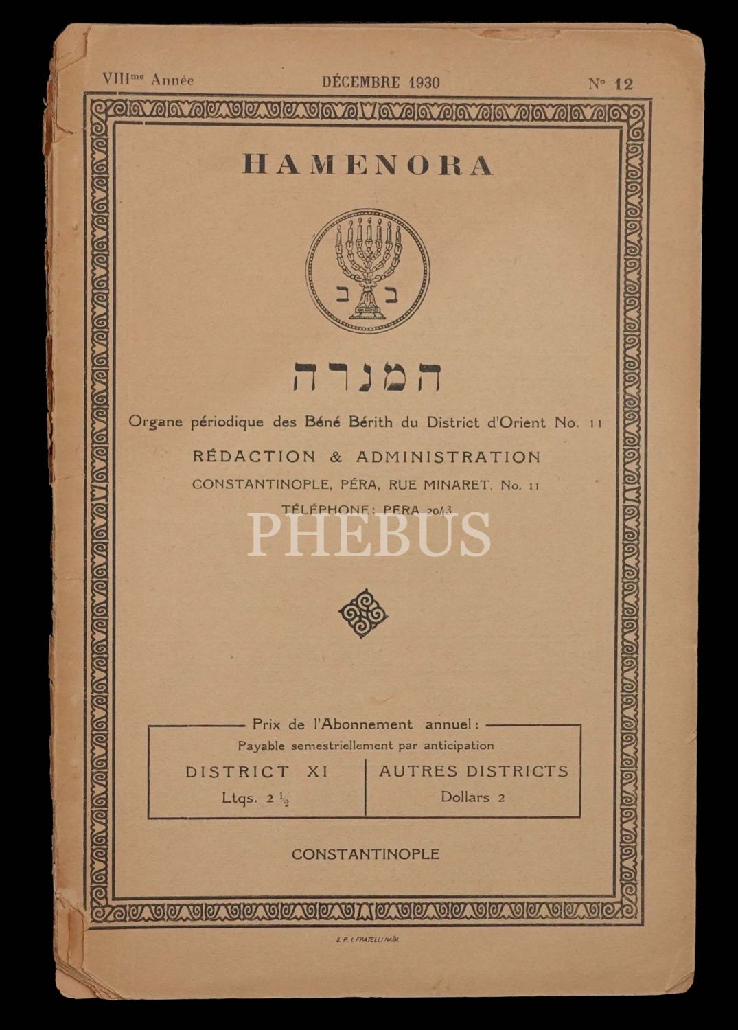 Fransızca "Hamenora" dergisi, Yıl: 8 - Sayı: 12 (Aralık 1930), İstanbul - Pera baskı, 430+5 sayfa...