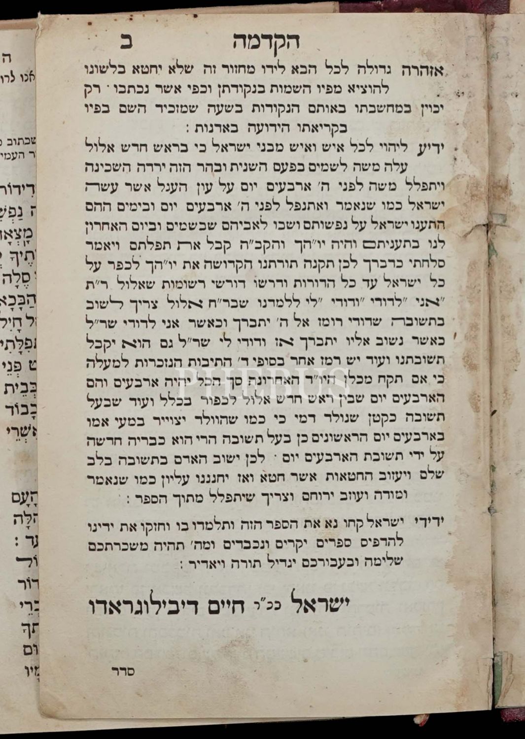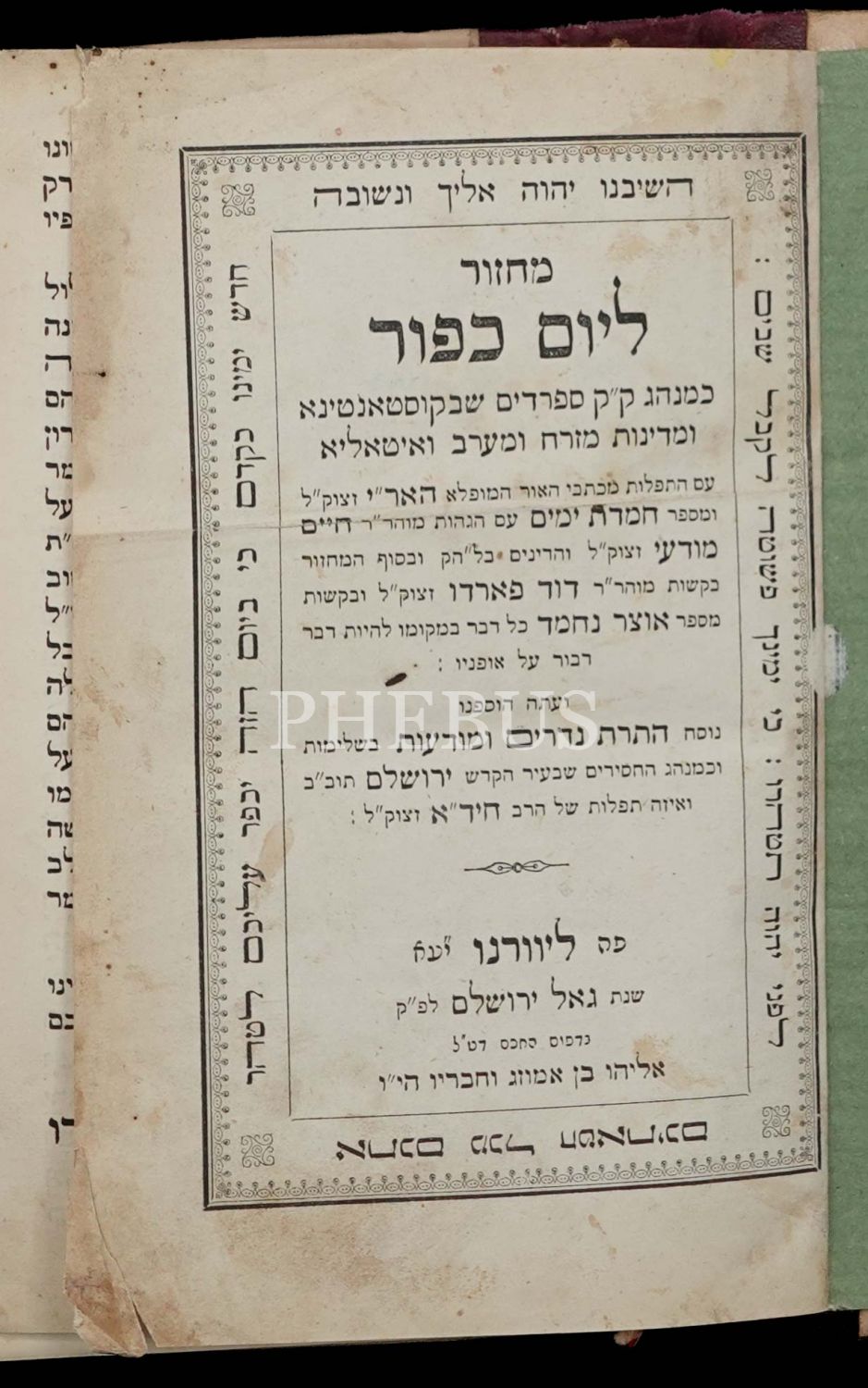 MACHZOR LE YOM KİPPURİM (מחזור יוֹם כִּיפּוּר), Livorno, Eliyahu Ben Ha´Mozek ve Ort. Matbaası, 388 sayfa...