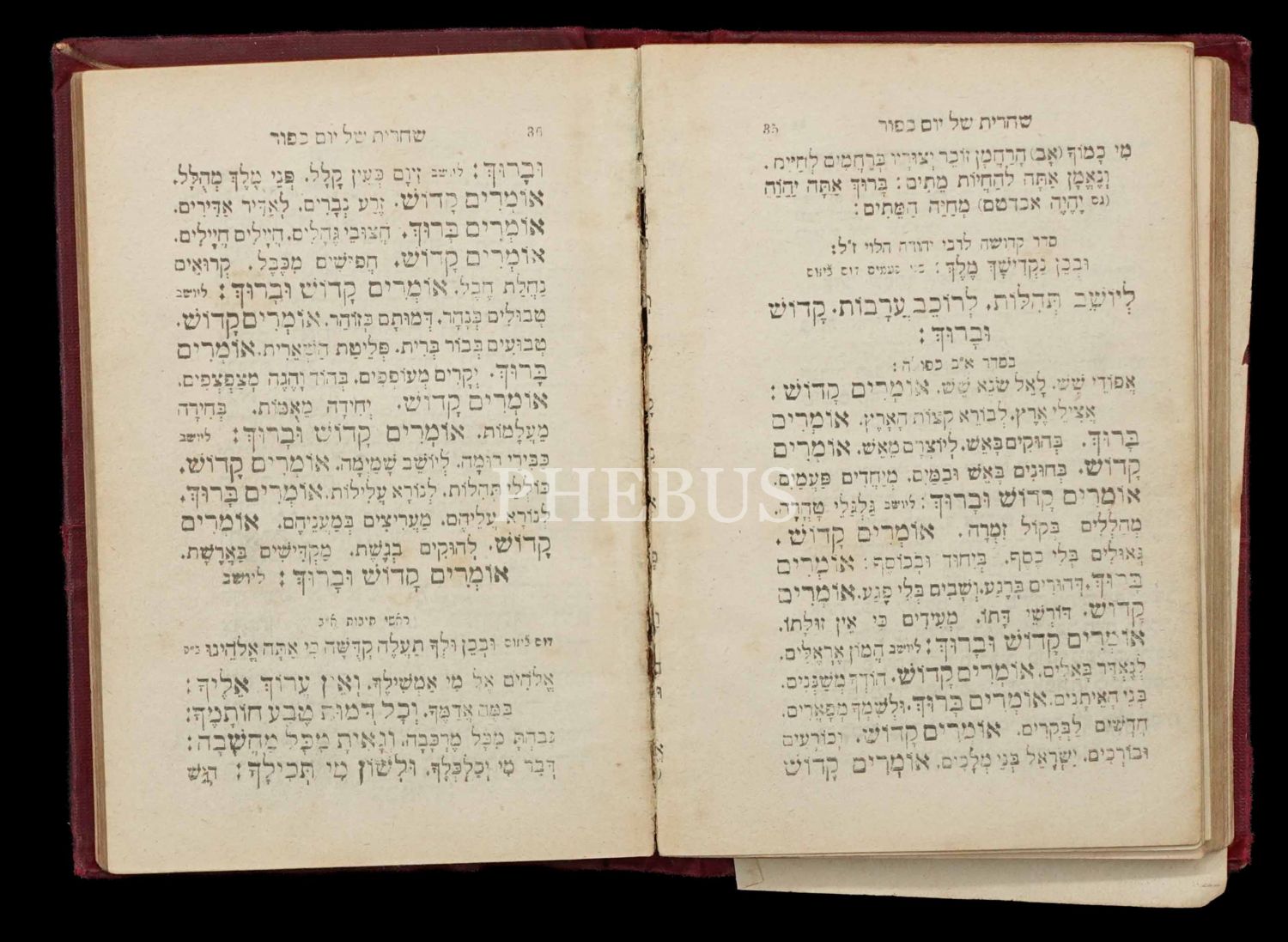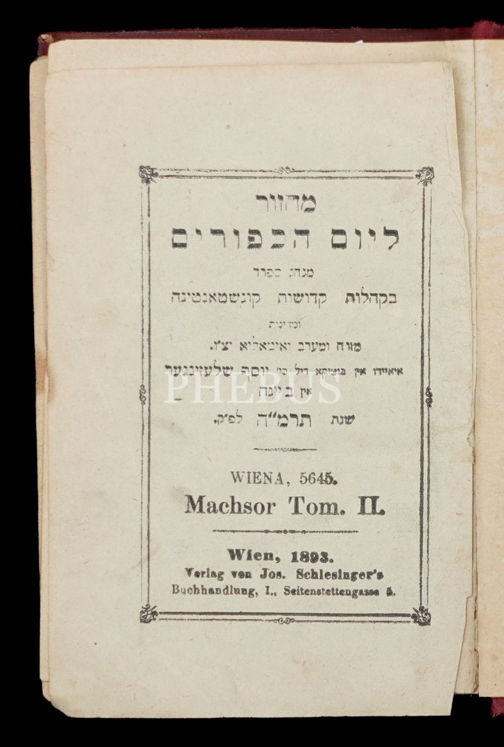 MACHZOR LE YOM KİPPURİM (מחזור יוֹם כִּיפּוּר), Duası, Viyana Josef Shlezinger Matbaası, (5645) 1893 Baskı, 192+(36-381) sayfalararası, 15,5x10,5 cm...
