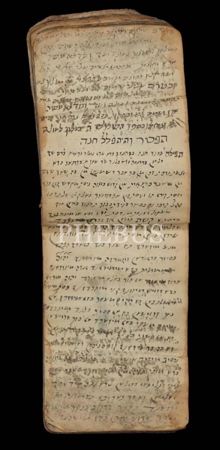 Yakarışlar, Hanna´nın Duası, Shircha Le´El Adir vs. gibi içeriklerle dolu 125 yaprak... Defter genelinde mürekkep dağılması mevcuttur.