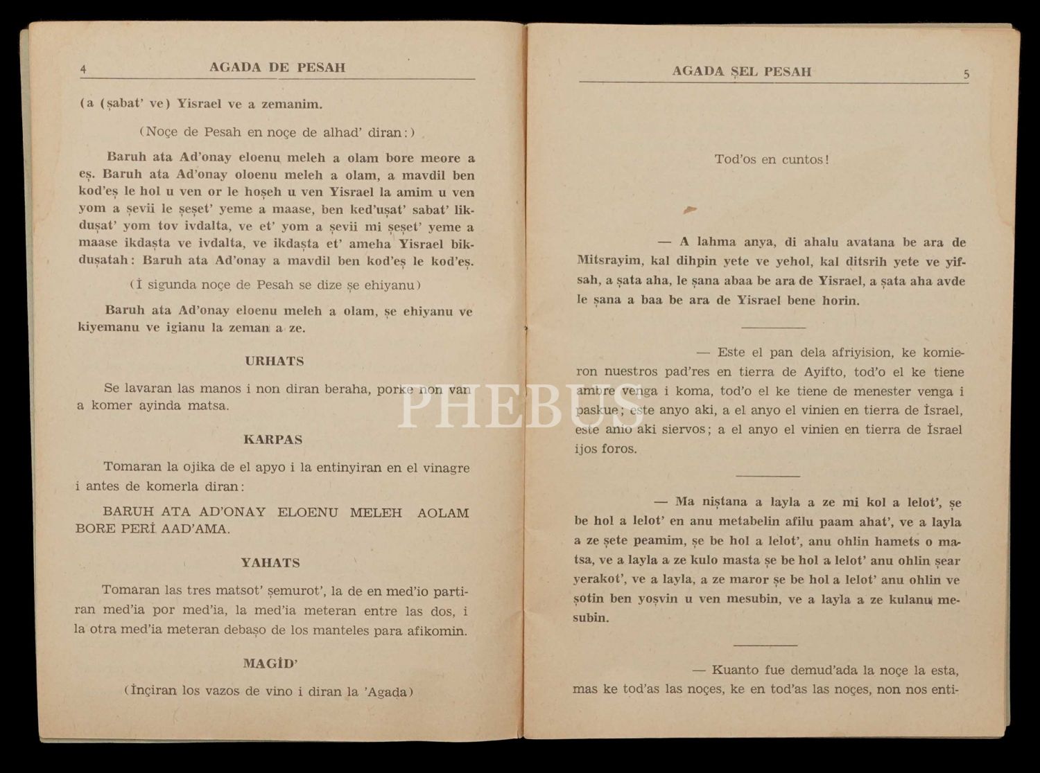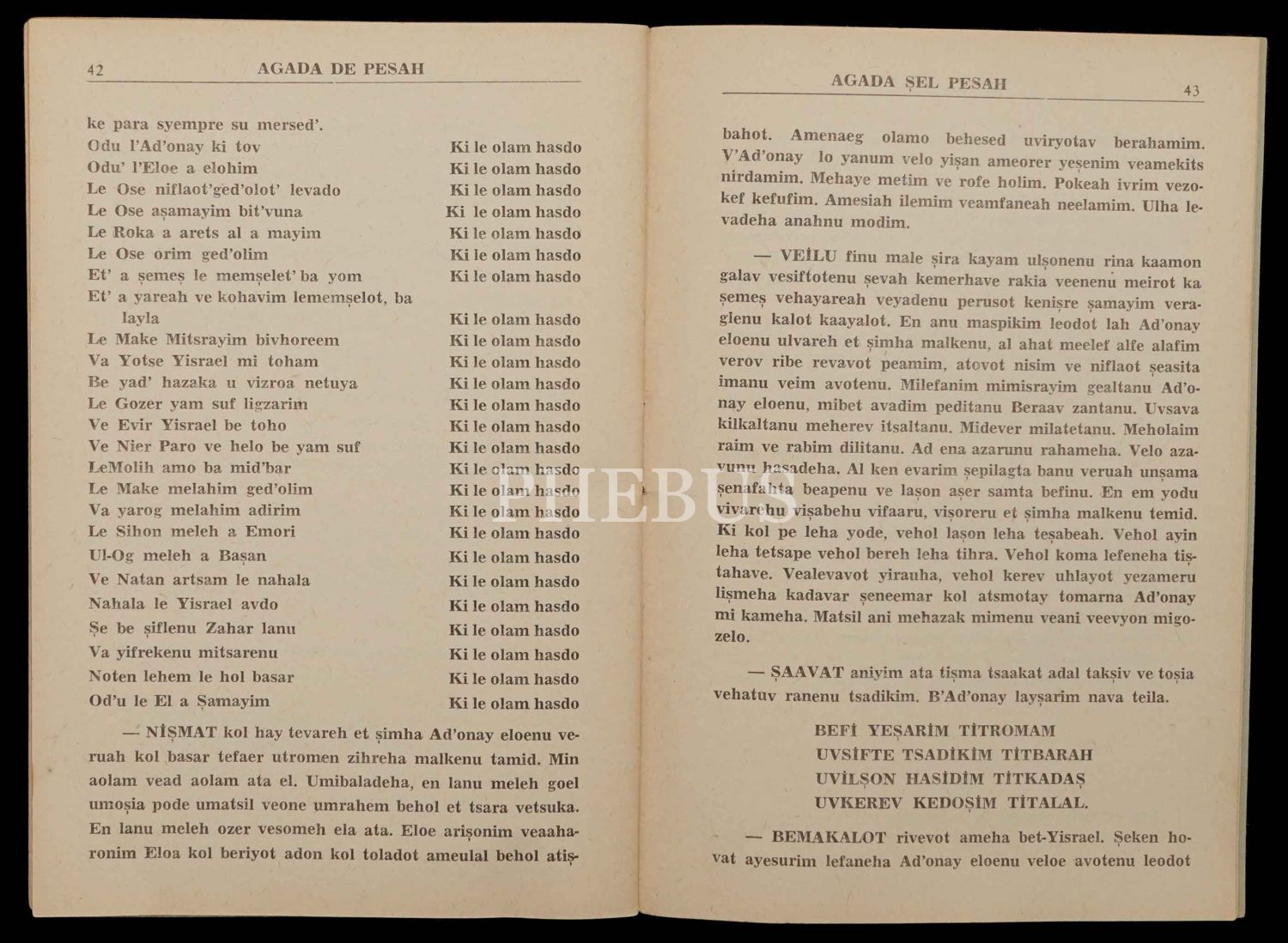 Yahudi Hamursuz Bayramı (Pesah) dua kitabı. Latin harflerle İbranice dua ve Ladino tercümeli... 20x13,5 cm...