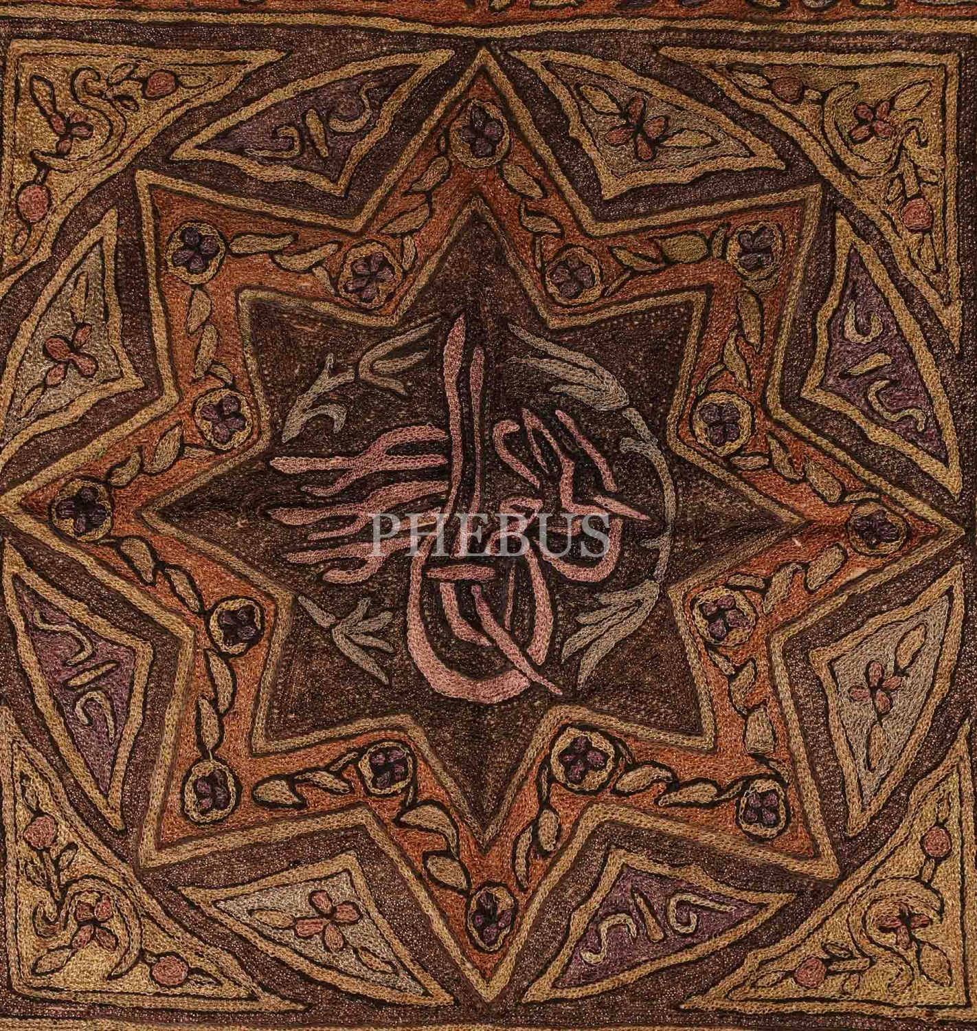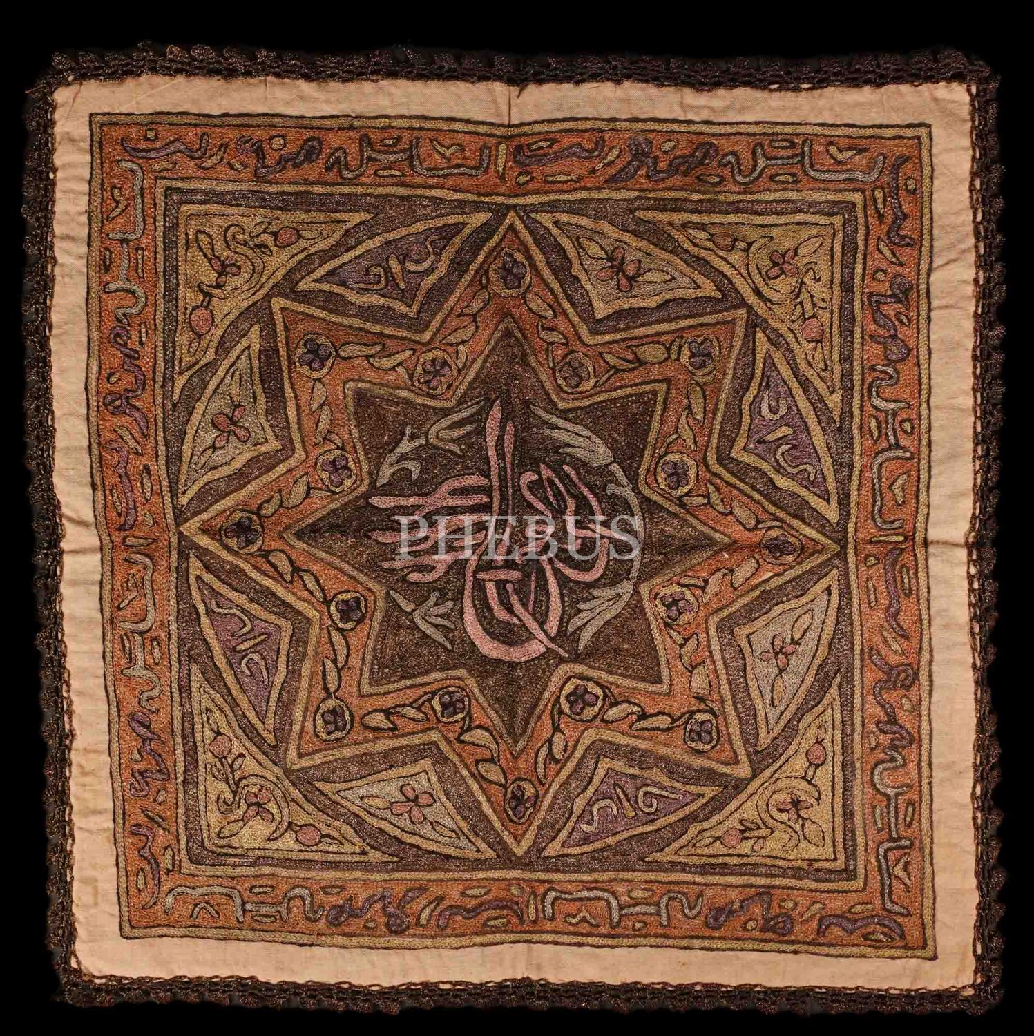 Osmanlı döneminden, ortası Sultan İkinci Abdülhamid tuğrası işlemeli örtü, 47x47 cm...