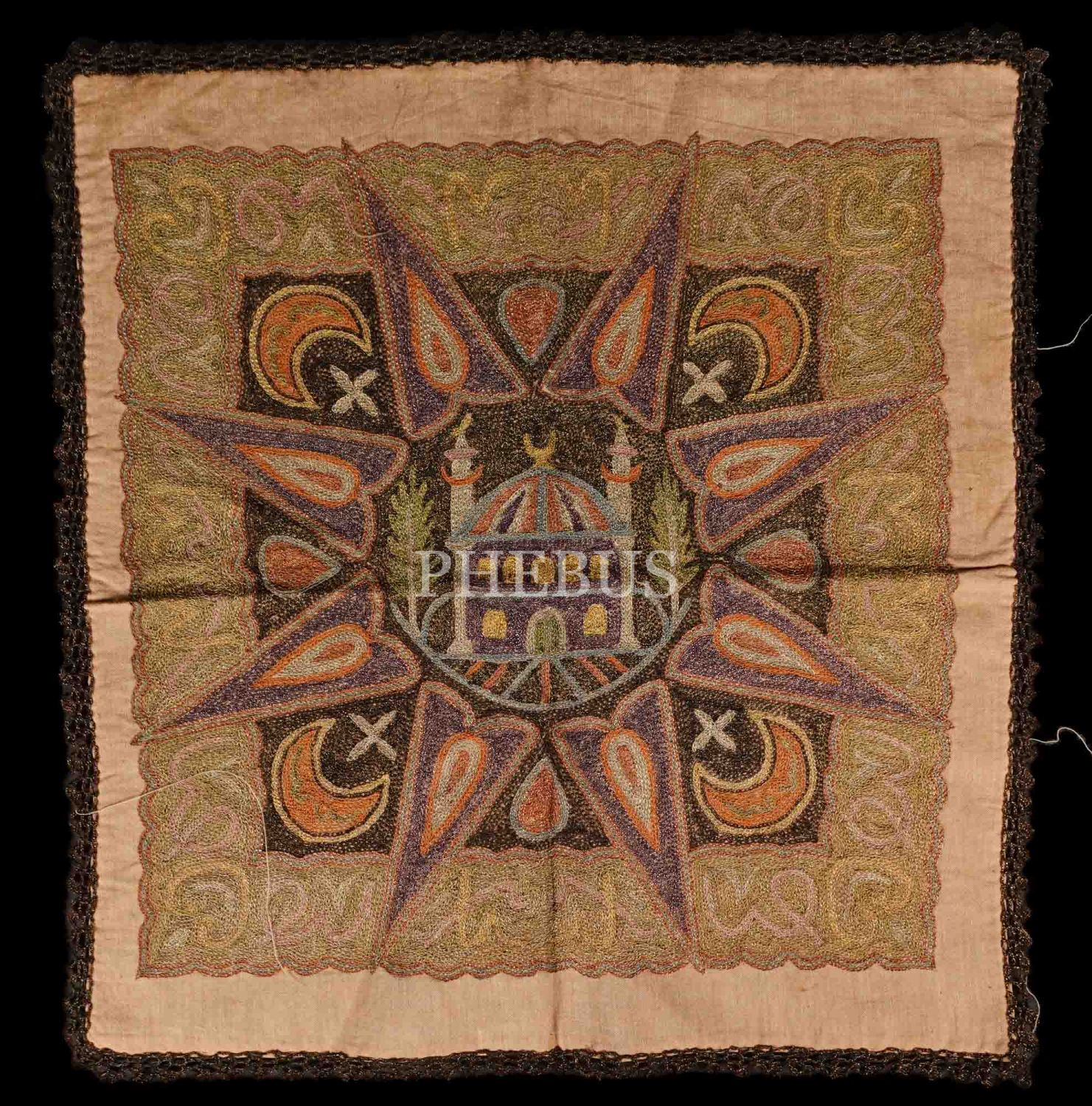 Osmanlı döneminden ay yıldız ve cami işlemeli örtü, 52x48 cm...
