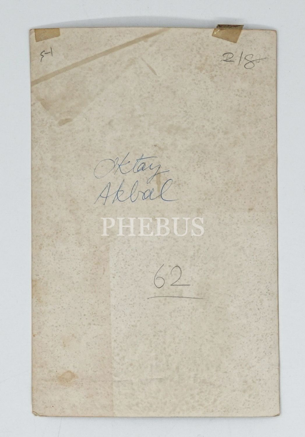 Hikâyeci, romancı ve gazeteci Oktay Akbal´ın, muhtemelen bir basın muhabiri tarafından çekilmiş ve arka yüzüne "Oktay Akbal" notu düşülmüş nadir bir fotoğrafı...