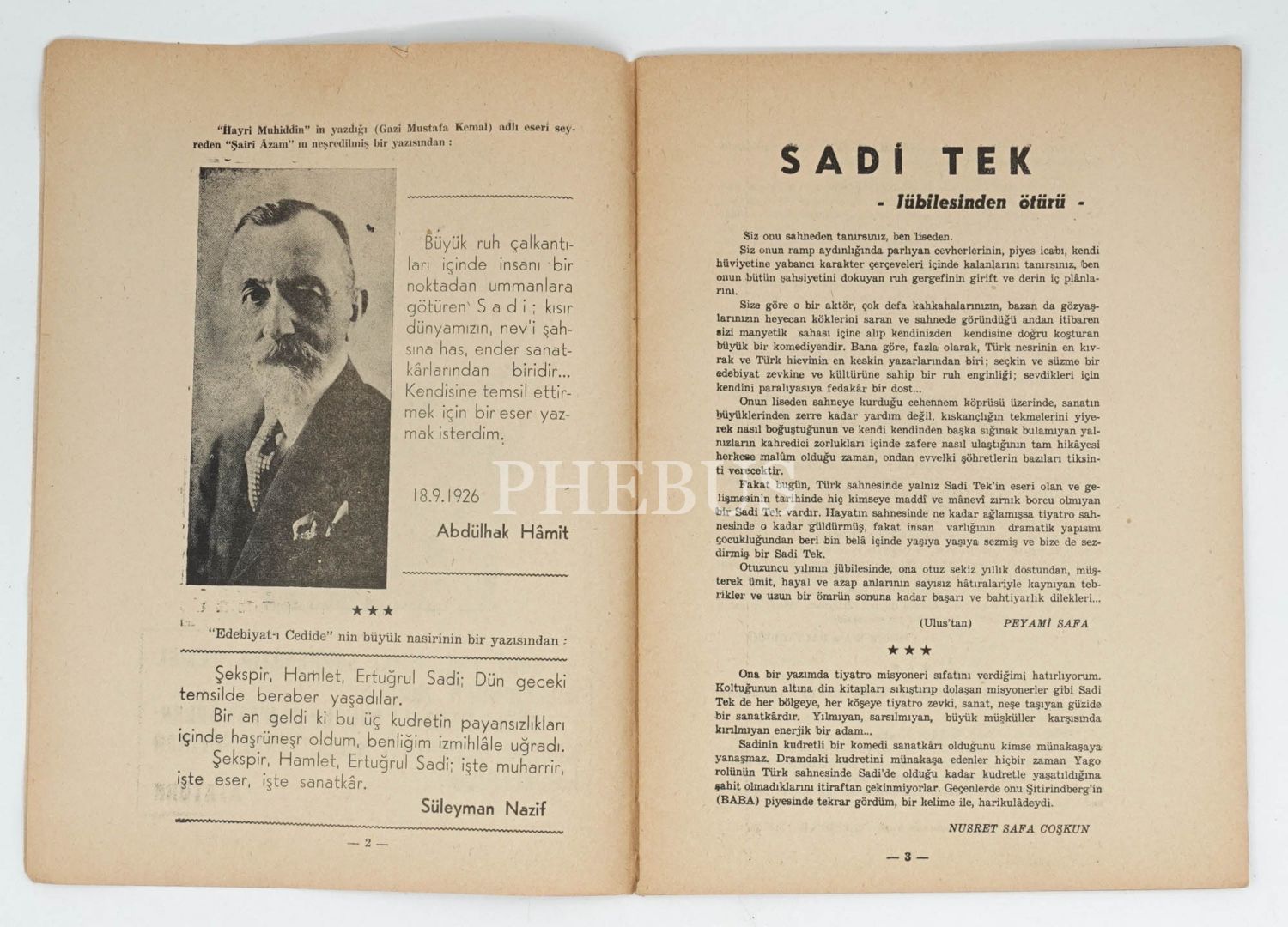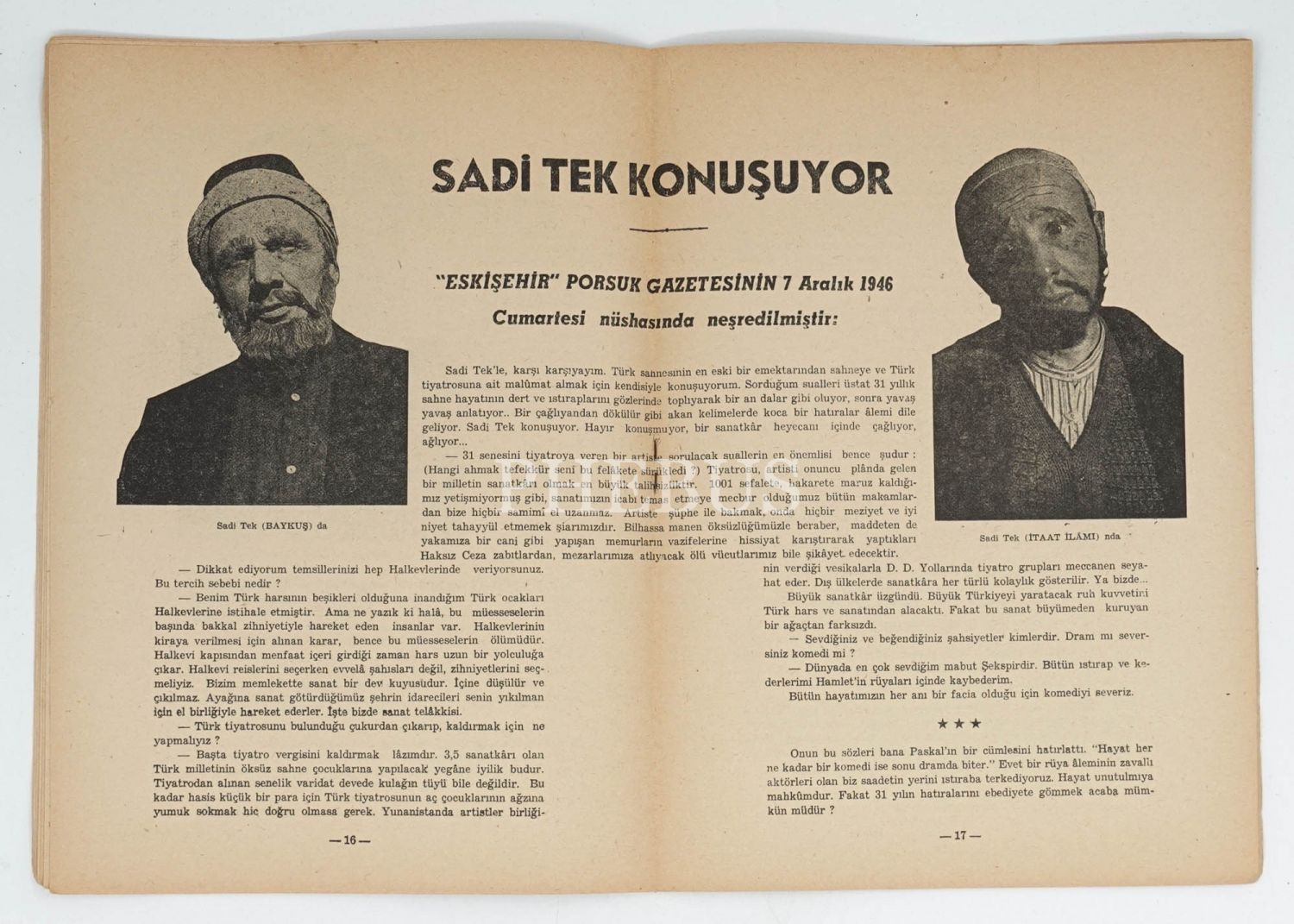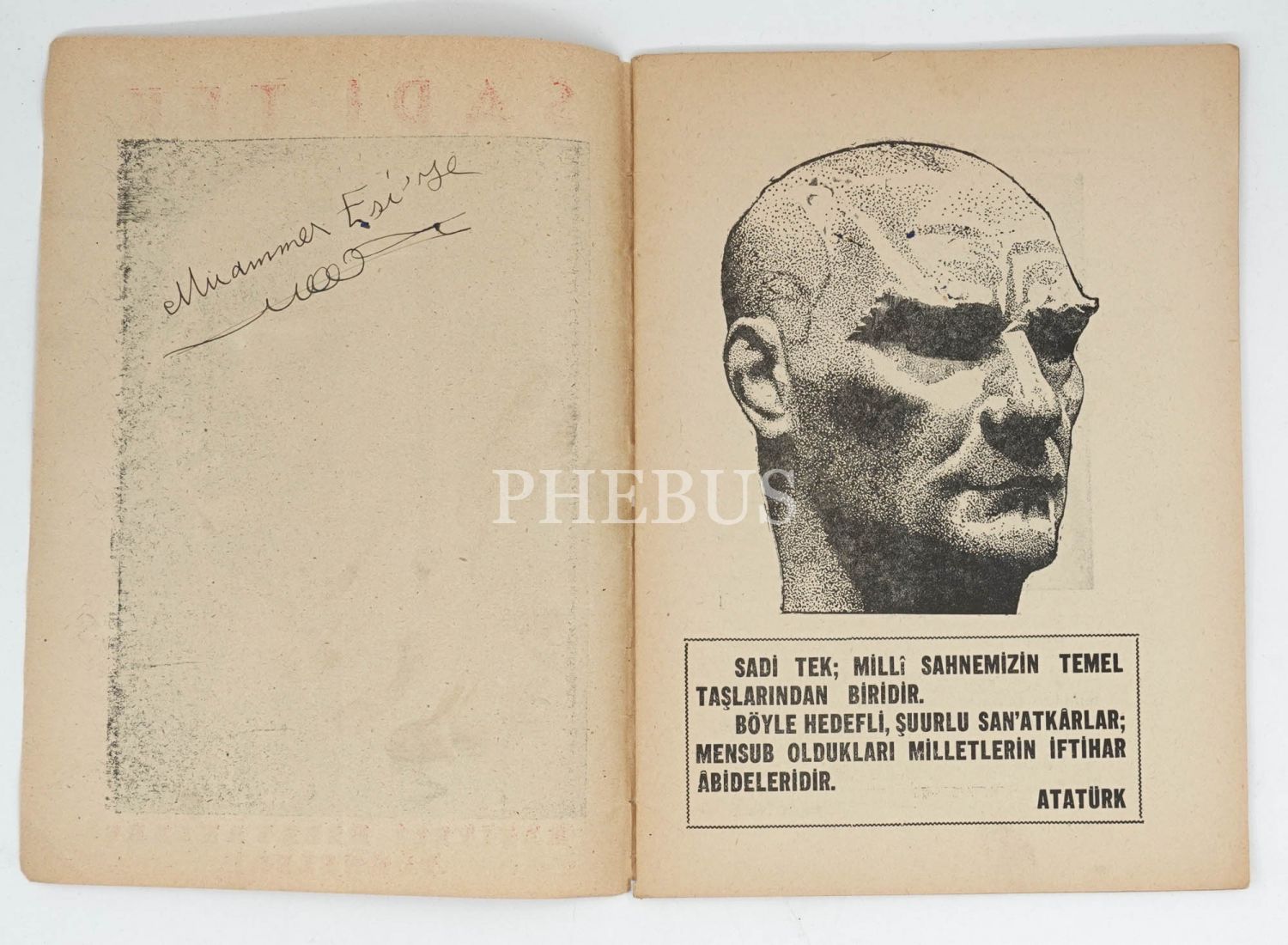 Oyuncu ve yönetmen Sadi Tek`ten tiyatro sanatçısı Muammer Esi`ye ithaflı ve imzalı...