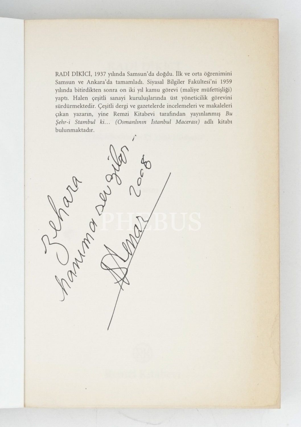"Zehra hanıma sevgiler." ithafıyla imzalıdır.
