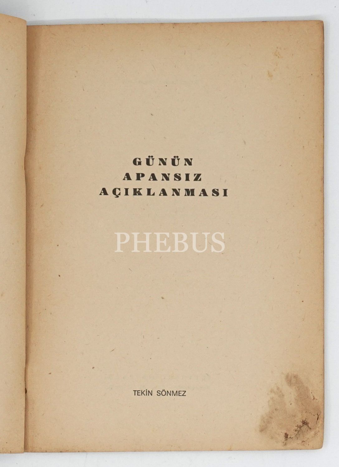 GÜNÜN APANSIZ AÇIKLANMASI, Tekin Sönmez, İstanbul Matbaası, 1968, 32 sayfa, 14x20 cm...