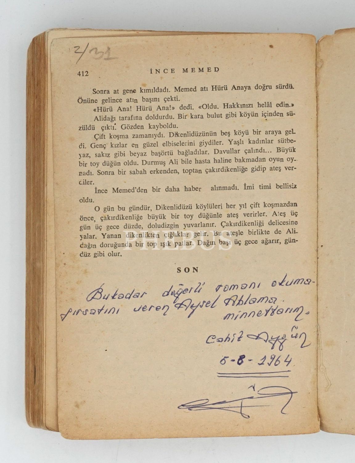 İNCE MEMED, Yaşar Kemal, 1957, Remzi Kitabevi, 412 sayfa, 14x20 cm...