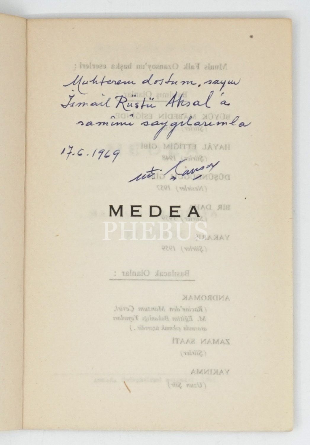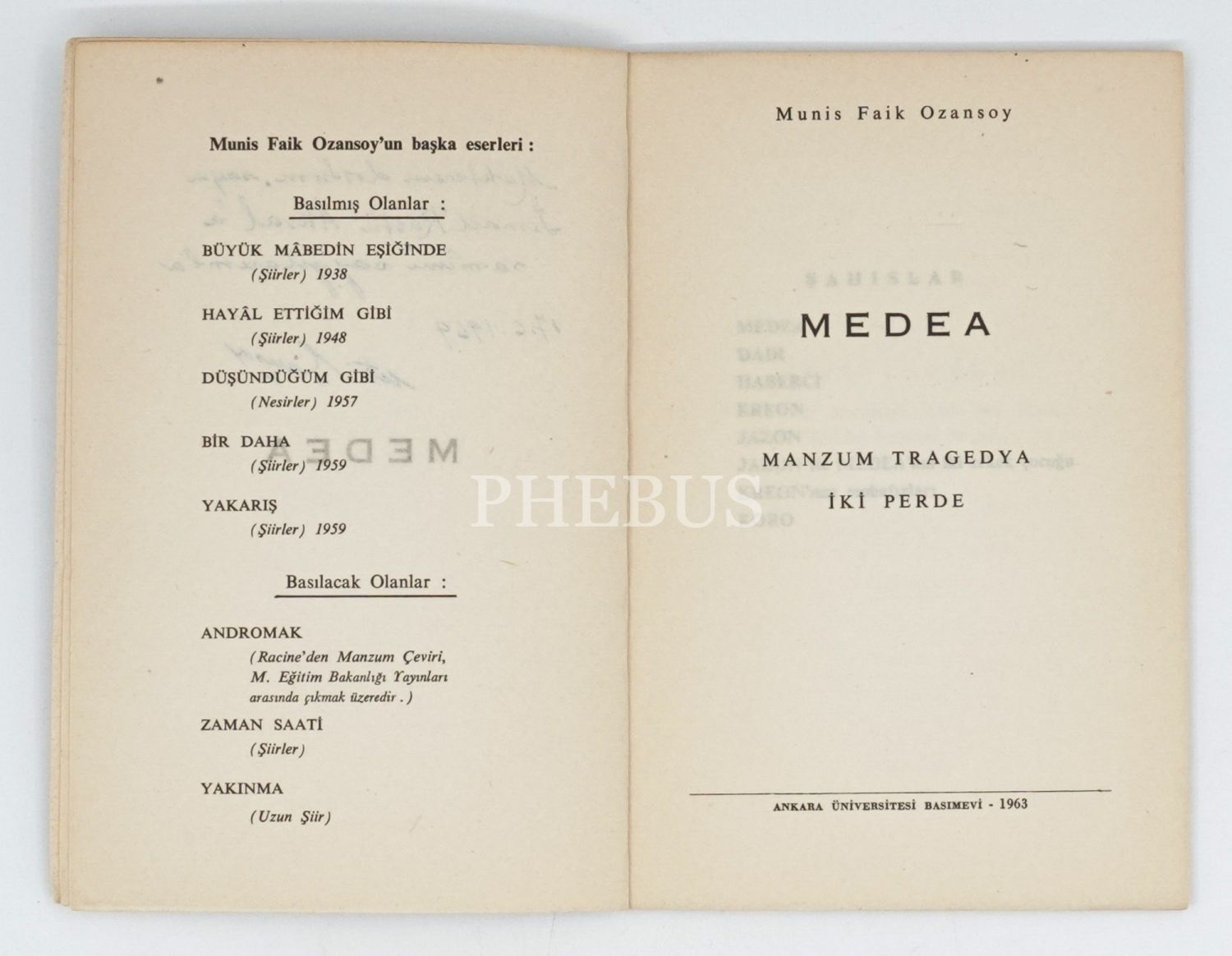 MEDEA (Manzum Tragedya - İki Perde), Munis Faik Ozansoy, 1963, Ankara Üniversitesi Basımevi, 45 sayfa, 11x17 cm...