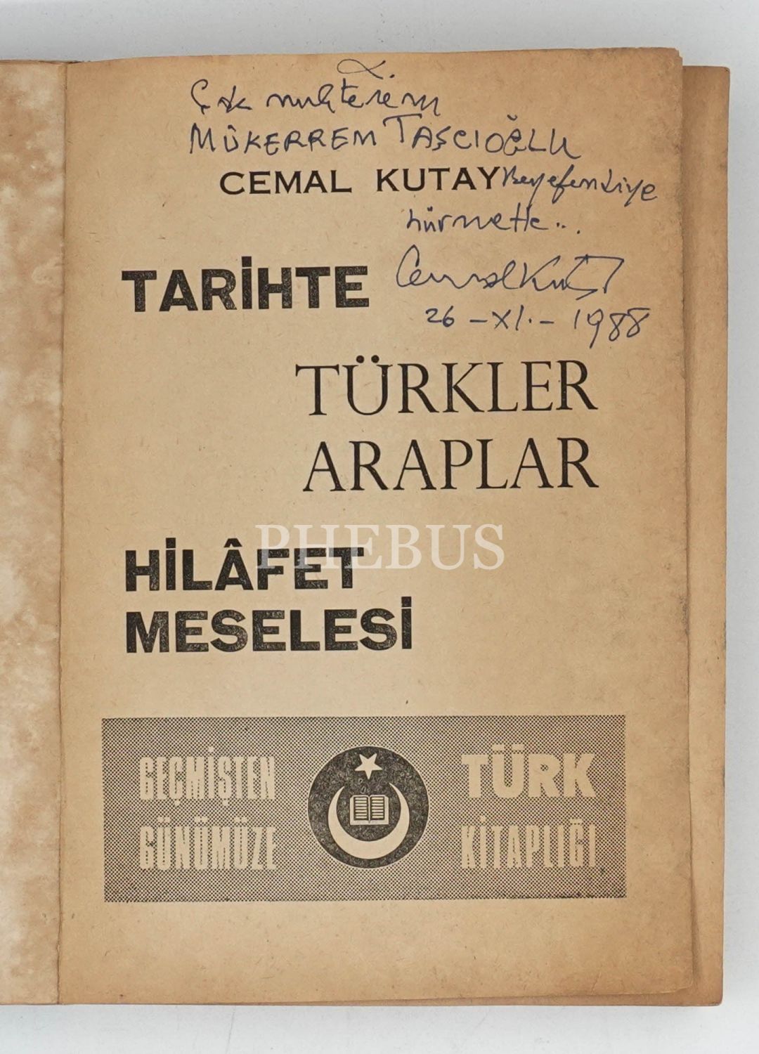 TARİHTE TÜRKLER - ARAPLAR (Hilâfet Meselesi), Cemal Kutay, 1970, Geçmişten Günümüze Türk Kitaplığı, 319 sayfa, 14x20 cm...