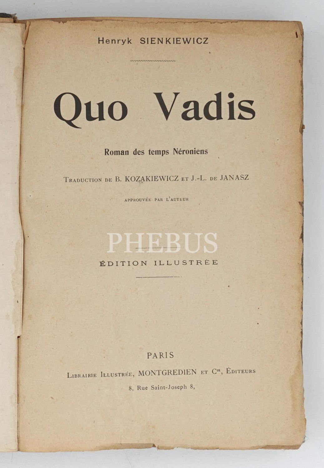 QUO VADIS (Roman des temps Neroniens), Henryk Sienkiewicz, Librairie Illustree, Montgredien et Cie., Paris, 554 sayfa, 18x25 cm...