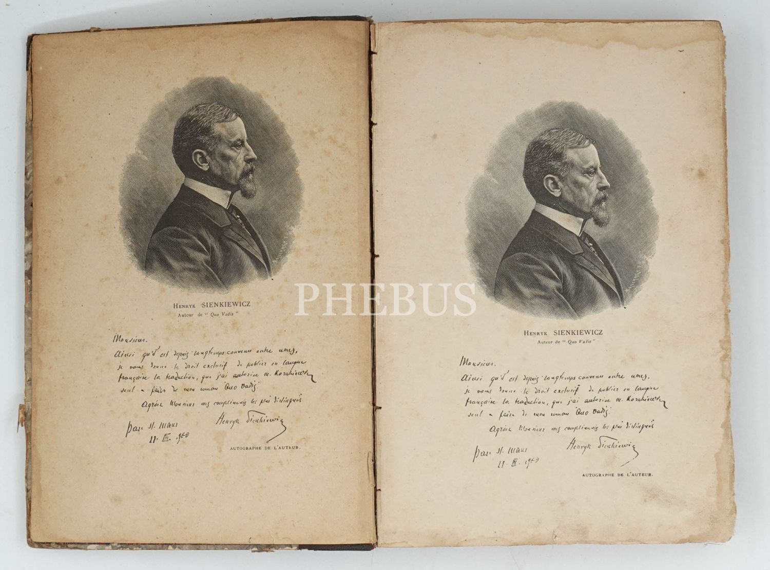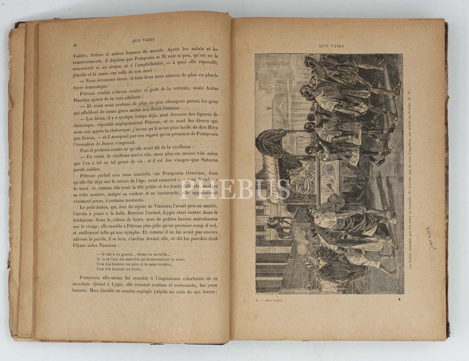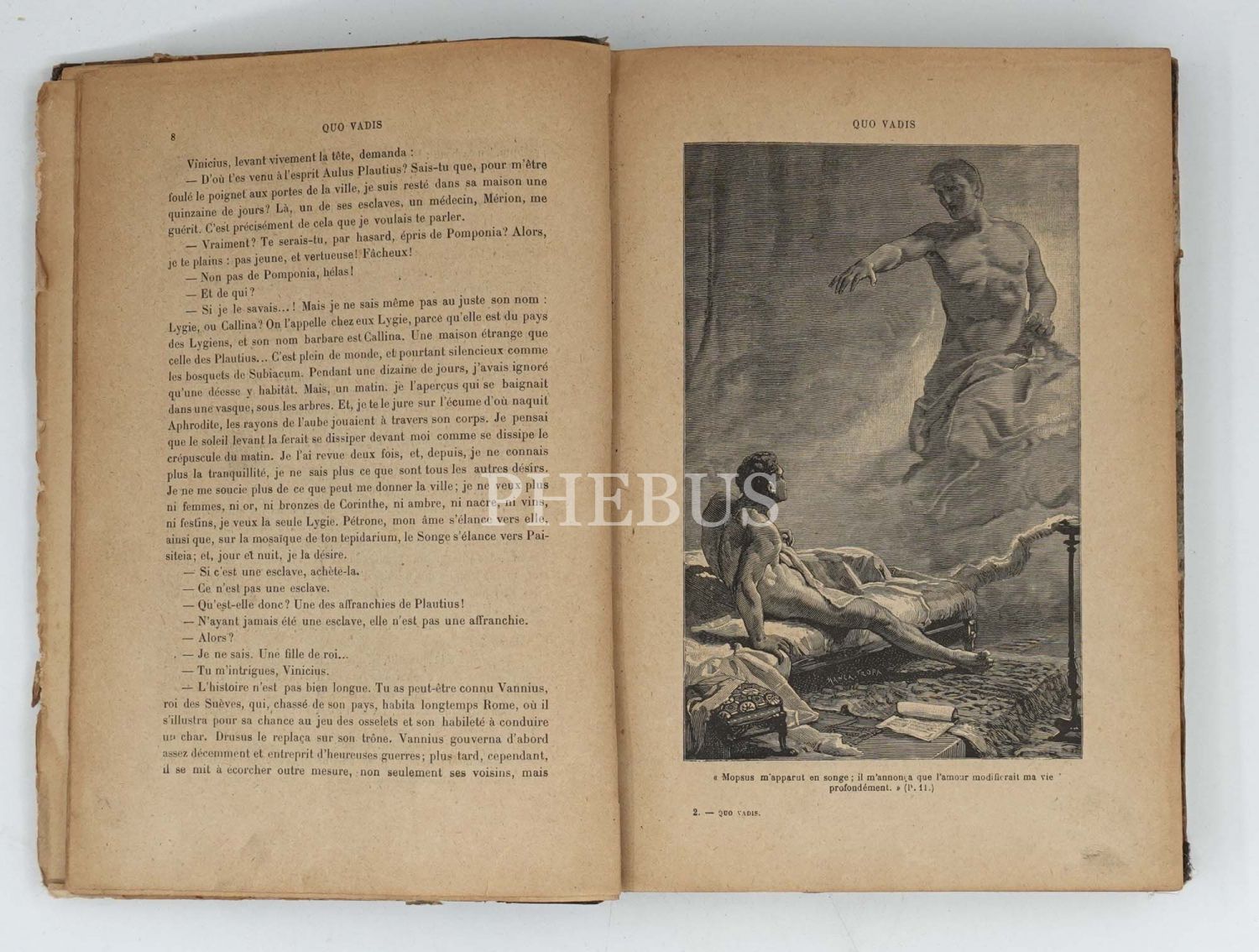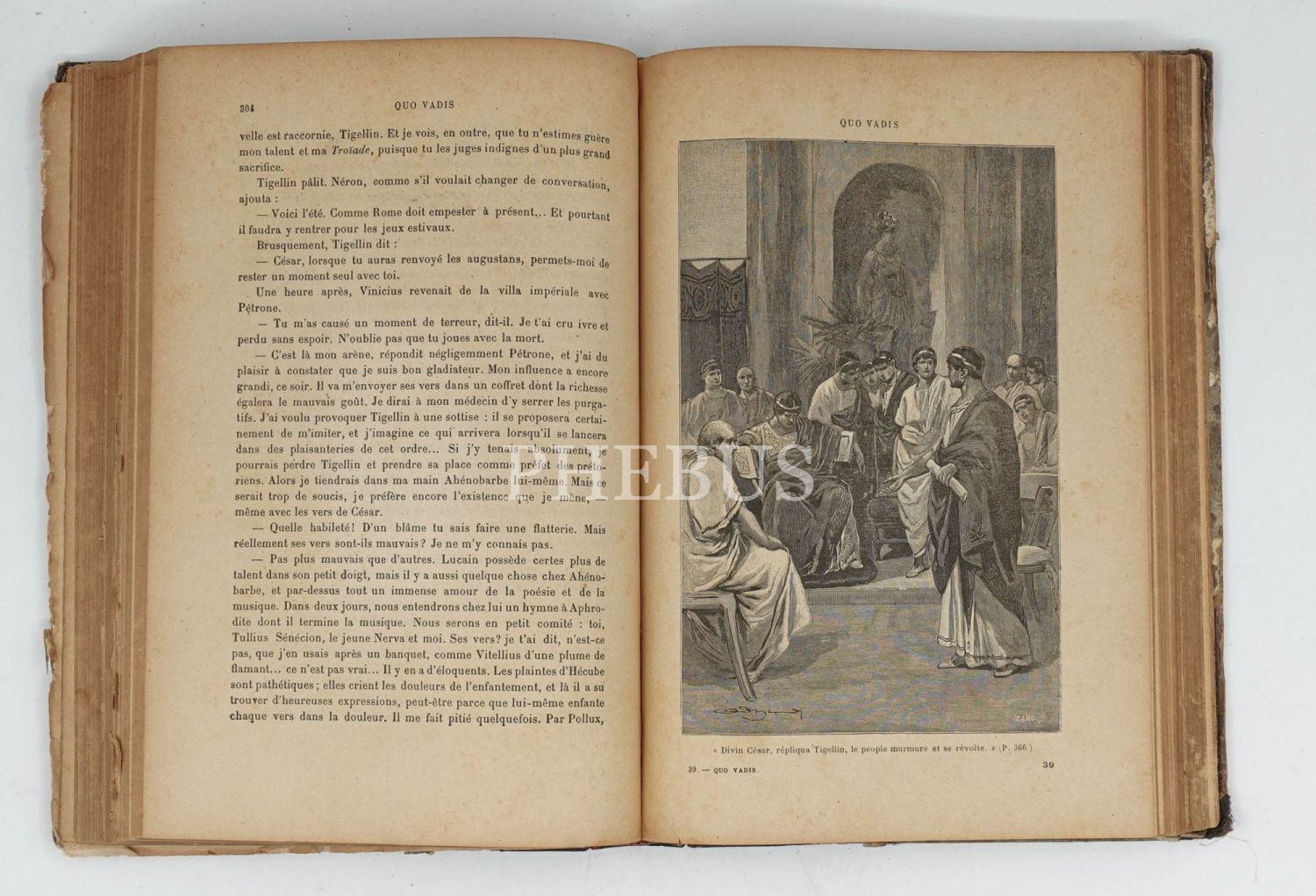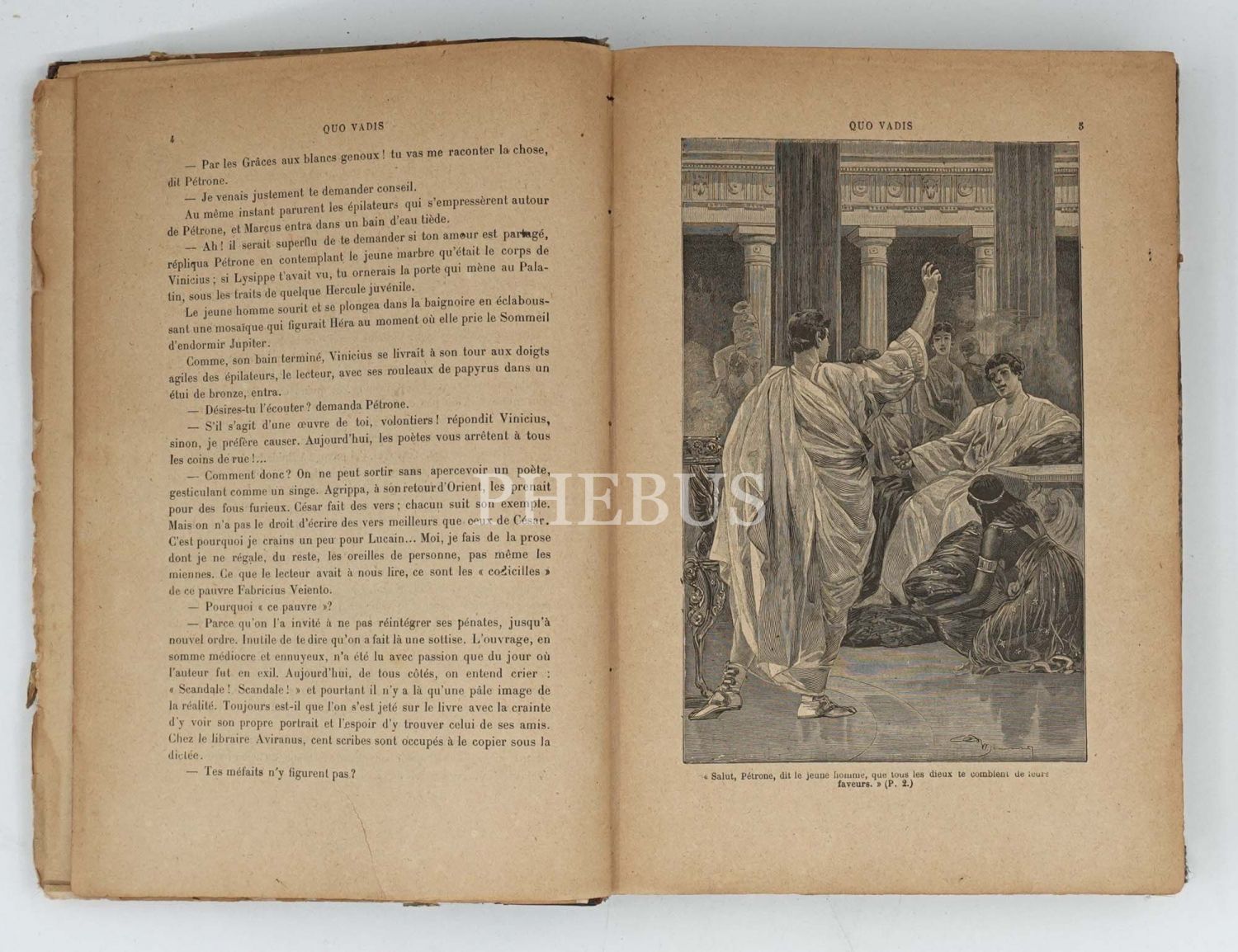 Henryk Sienkiewicz tarafından Lehçe kaleme alınan ve Roma İmparatorluğu´nda Hristiyanların karşılaştıkları baskıları bir imkansız aşk kurgusuyla okurlarla buluşturan tarihi romanın bol gravürlü Fransızca tercümesi... İç ve dış kapakları ebrulu, deri sırtlı dönem cildinde. *Sırtın üst bölümü haliyle.