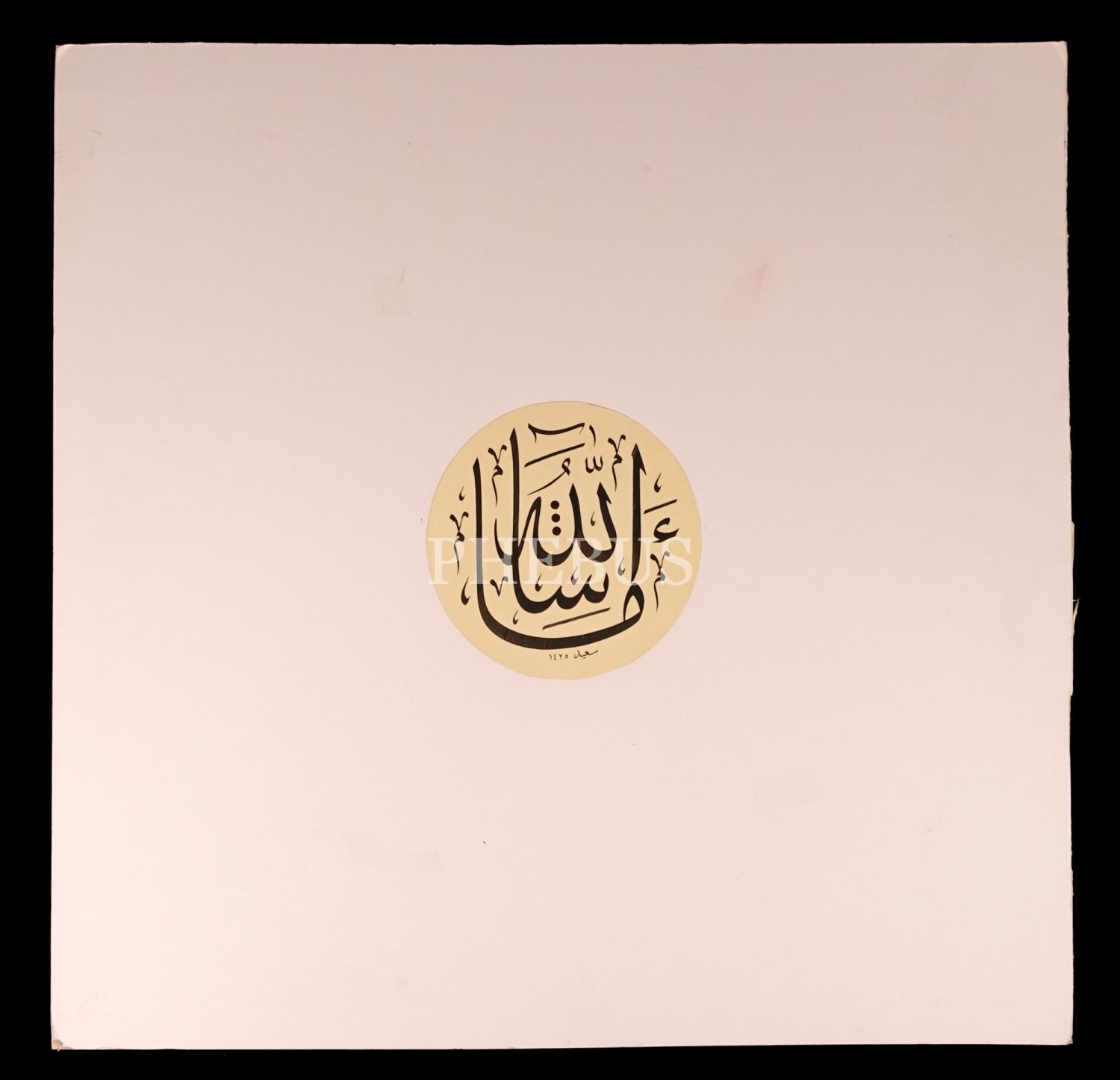 Said ketebeli celi sülüs "Maşallah" istifi, 1425, yazı: 15x15 cm, paspartusuyla birlikte 57x56 cm...