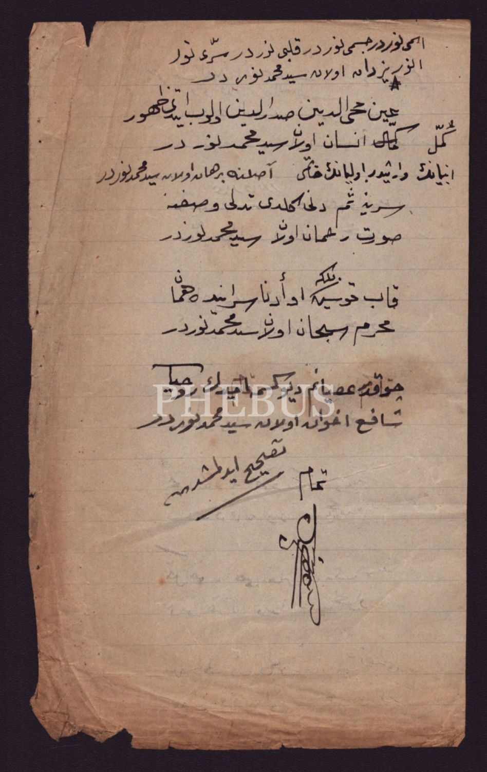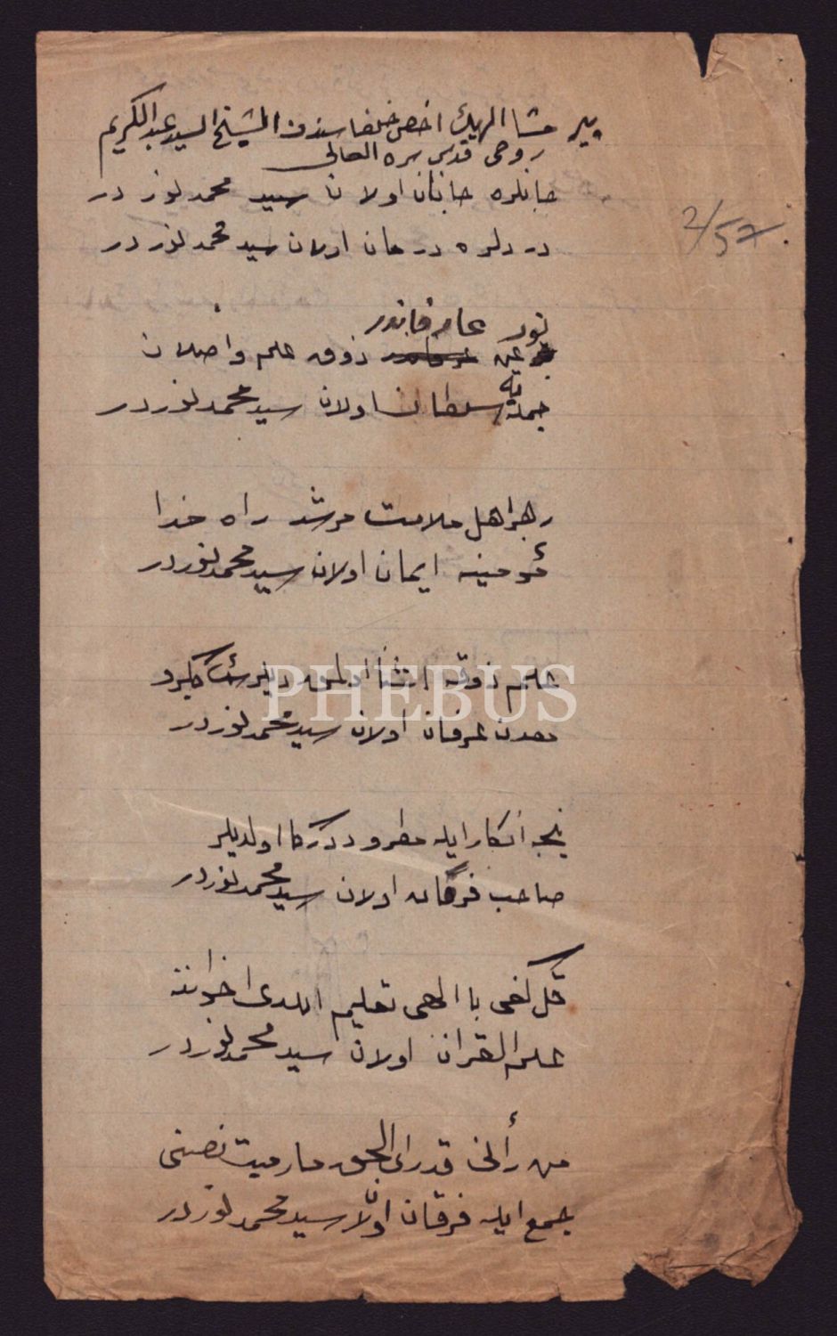 Seyid Muhammed Nur´un müritlerinden birisi tarafından kaleme alınmış şiir, 12x20 cm...