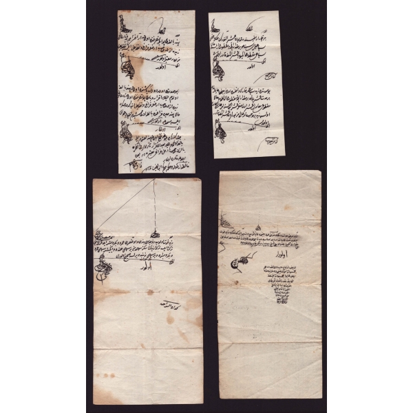 Osmanlı döneminden Şeyhülislam fetvaları, 4 adet, muhtelif boyutlarda...