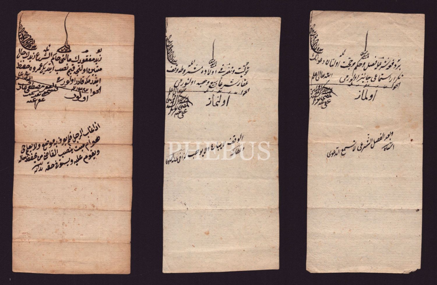 Osmanlı döneminden Şeyhülislam fetvaları, 3 adet, muhtelif boyutlarda...